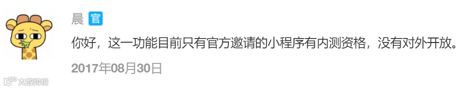 早在2017 年 8 月 30 日,微信工作人员曾在微信开发者社区表示「这一功能目前只有官方邀请小程序有内测资格,没有UI外开放。」