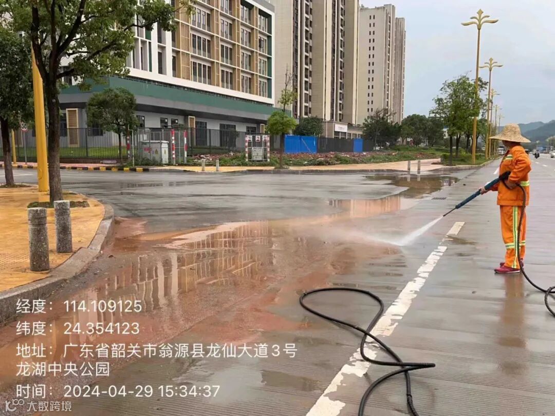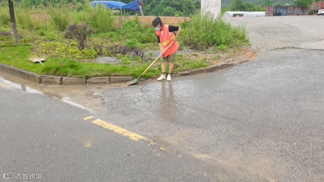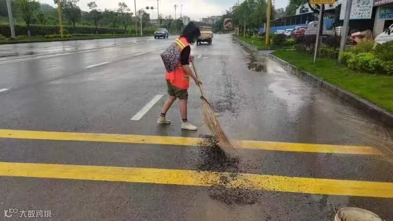 4、清理及冲洗暴雨过后流出路面大面积泥巴。