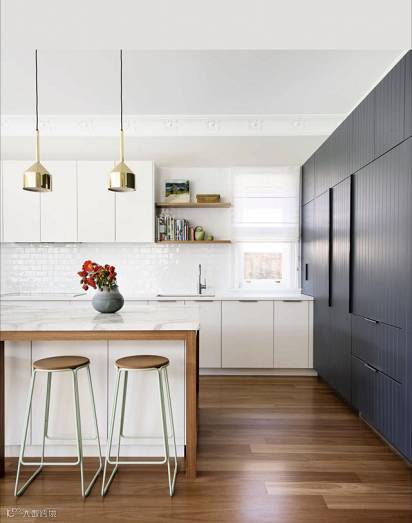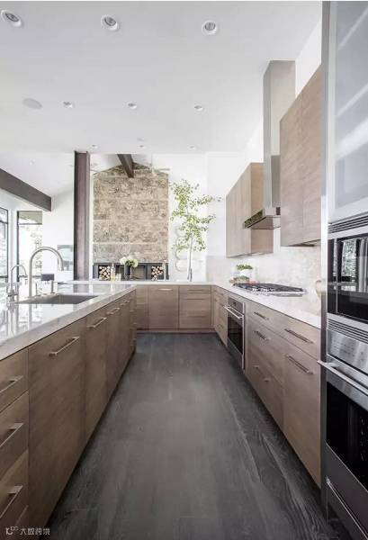 对于别墅来说,厨房空间也会较大,不需要去考虑利用边角空间,掌握大的原则,即用即收,相信完美的厨房就在眼前。