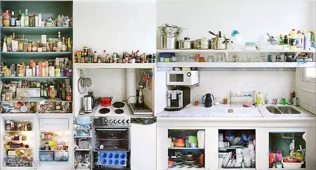 荷兰摄影师Erik Klein Wolterink拼接了10个来自不同国籍的厨房。如果分类再好,拿掉那块挡板,依然凌乱不堪。