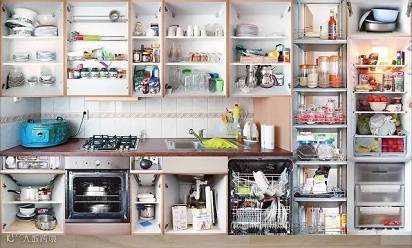 当你在厨房开始准备一顿晚餐,不妨留意一下自己的整个行动轨迹,从冰箱里取出食材,放到水池里清洗,清洗完放盘里搁在备菜区,然后是灶台烹饪,盛菜、上桌。这五个步骤基本上每一步都会涉及到收纳。