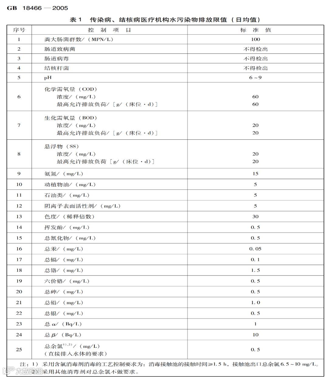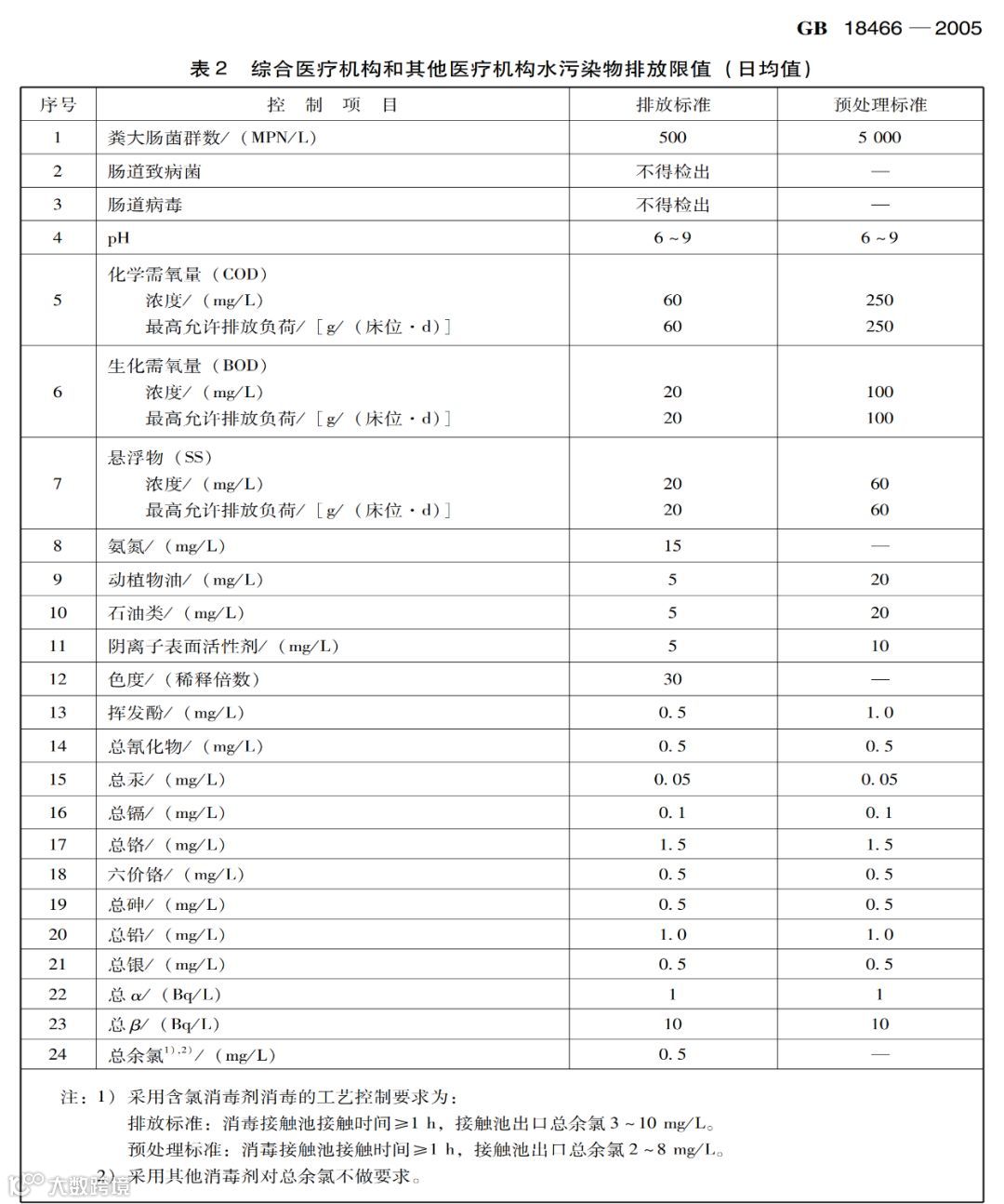 图4 GB 18466—2005中综合医疗机构污水排放指标和限值
