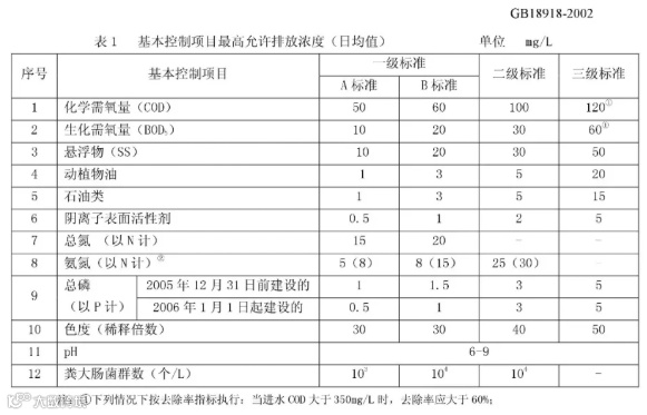 图2 GB 8978-I996对粪大肠菌群数和总余氯的限值要求