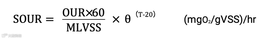 3. 计算方法:将测得的DO随时间变化绘制成曲线,截取曲线中的线性部分求其斜率,该斜率即为耗氧速率(OUR),单位为(mgO2/L)/min。SOUR计算公式为: