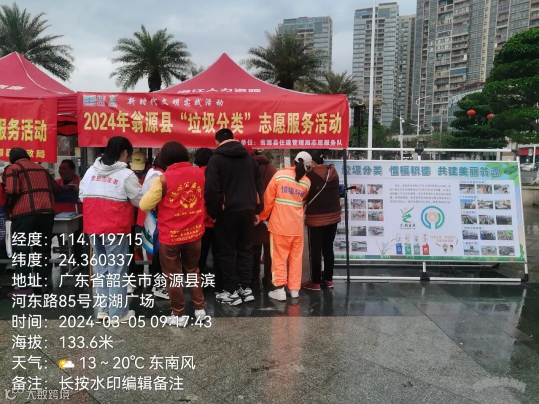 2、3月5号在龙湖广场开展2024年翁源县“垃圾分类”志愿服务活动。