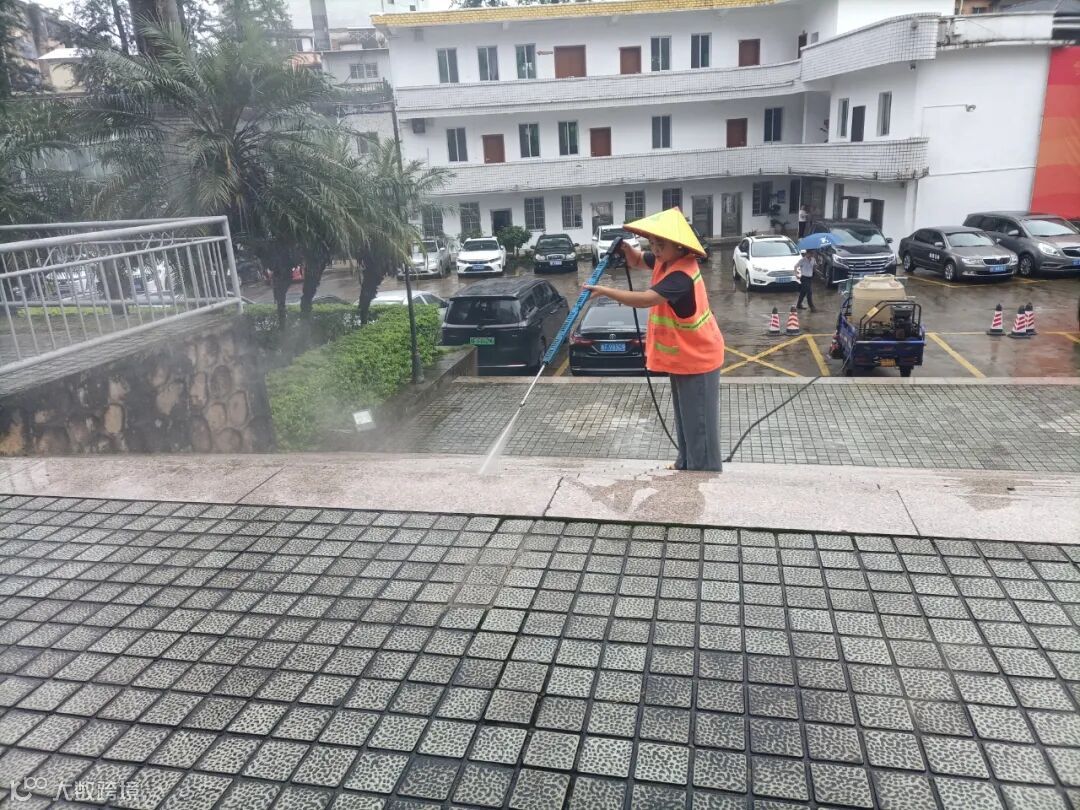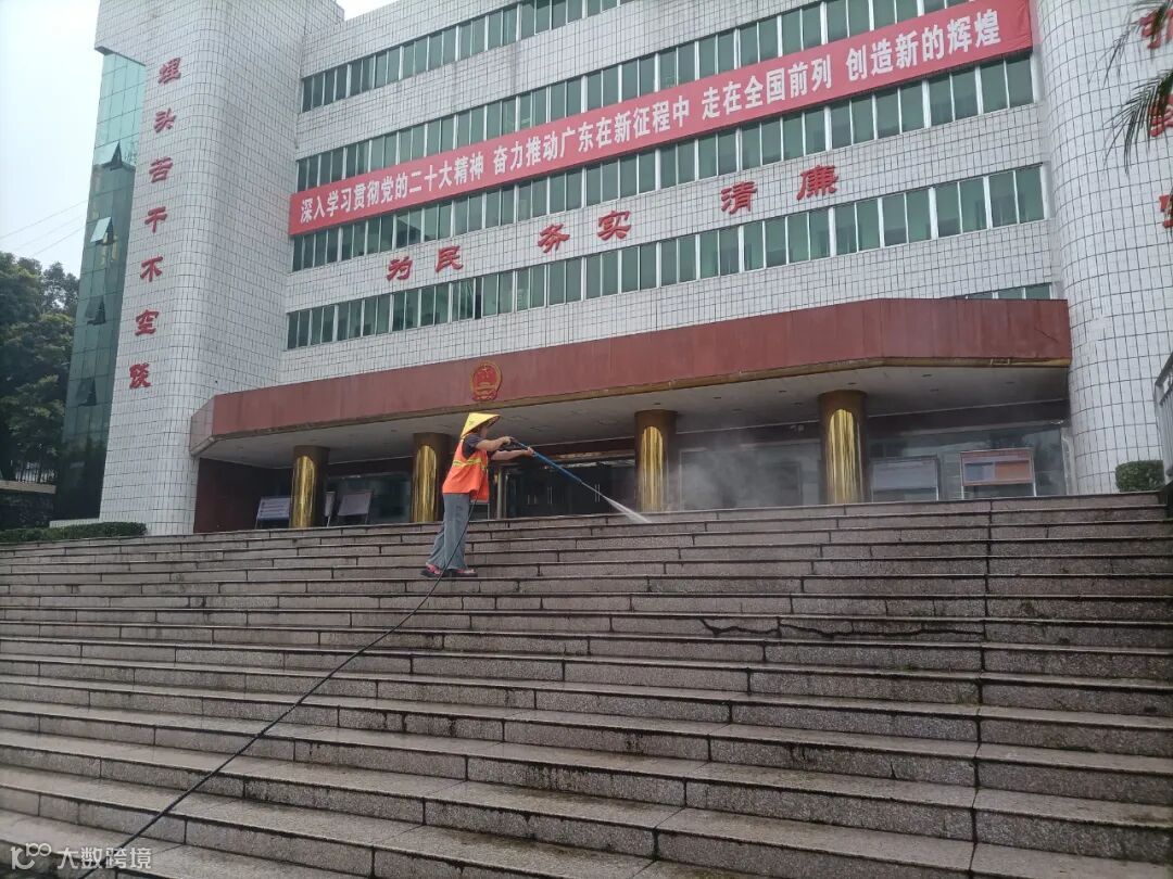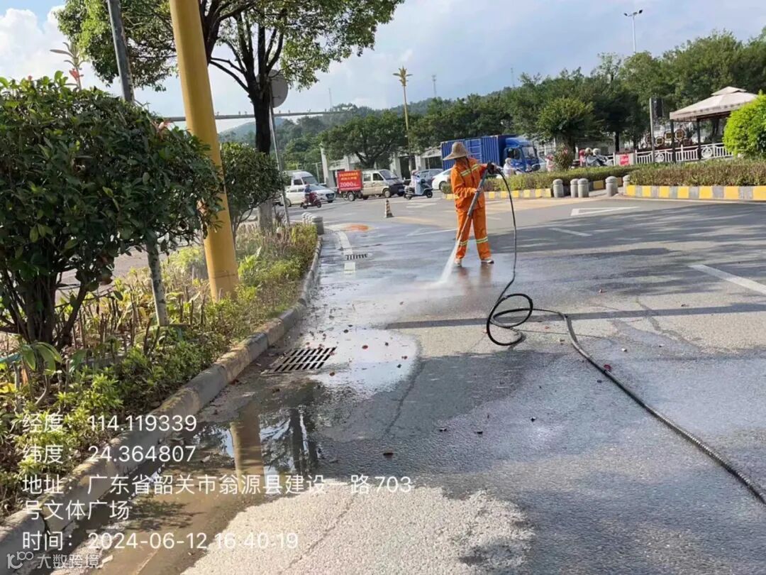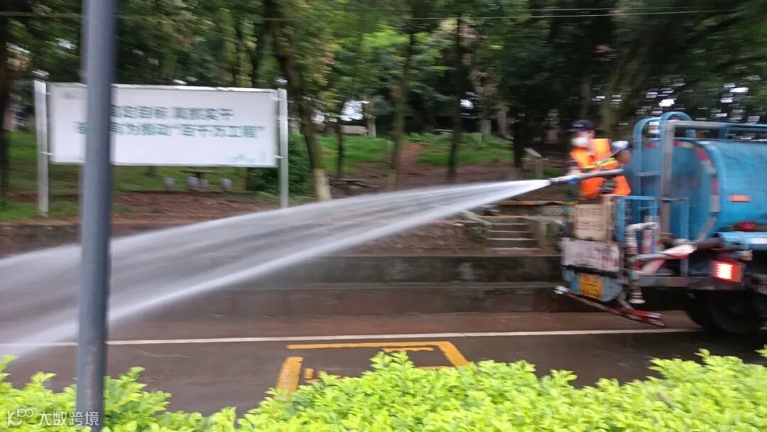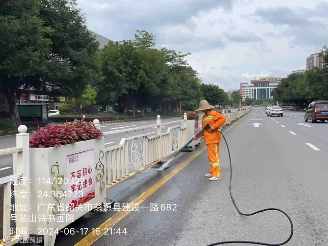 1、全面冲洗公路中间护拦,政府公园与政府办公大楼。