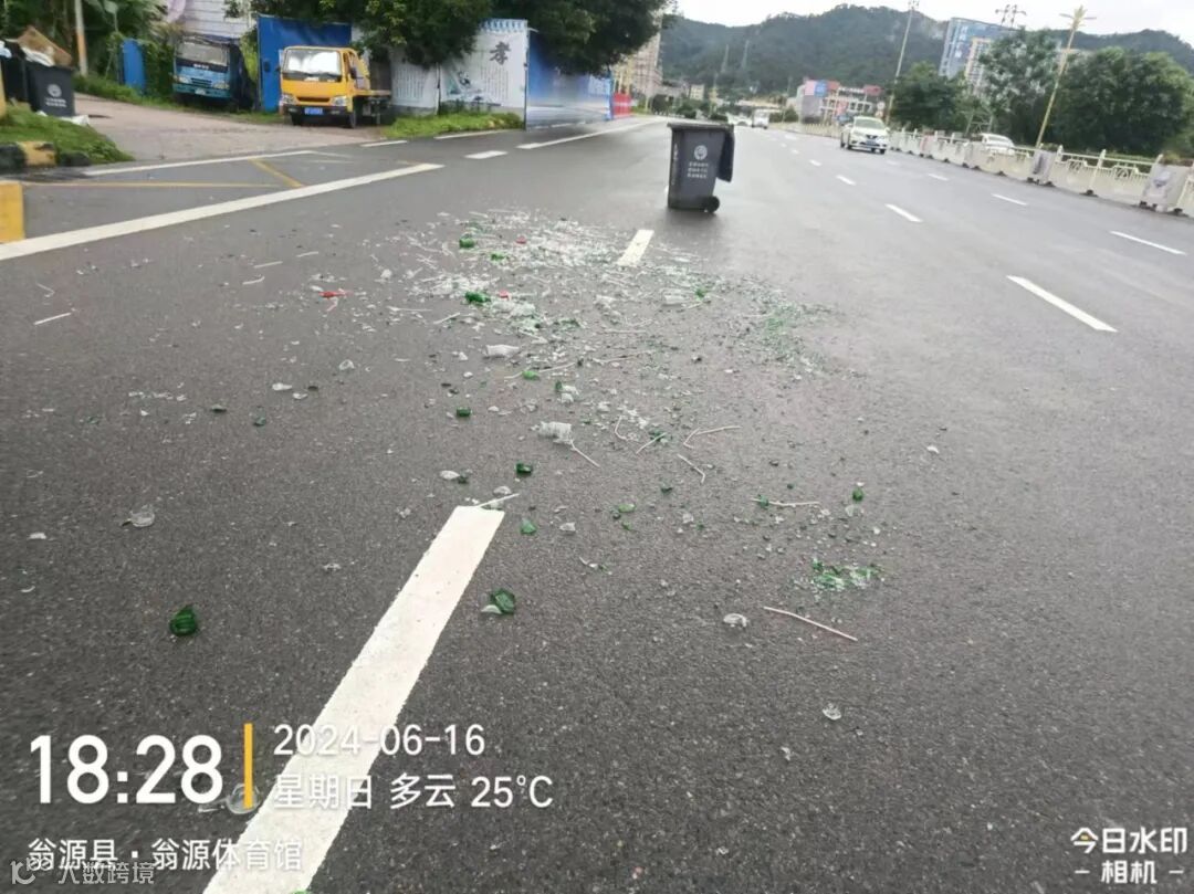 4、清理文休广场对面遗留下大量玻璃瓶及玻璃渣。