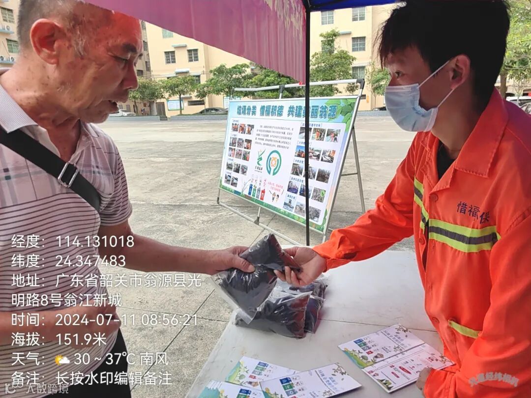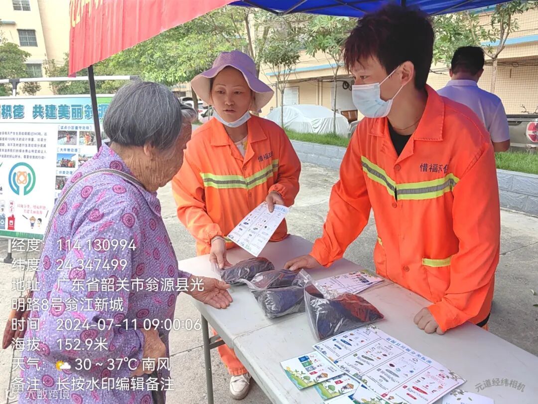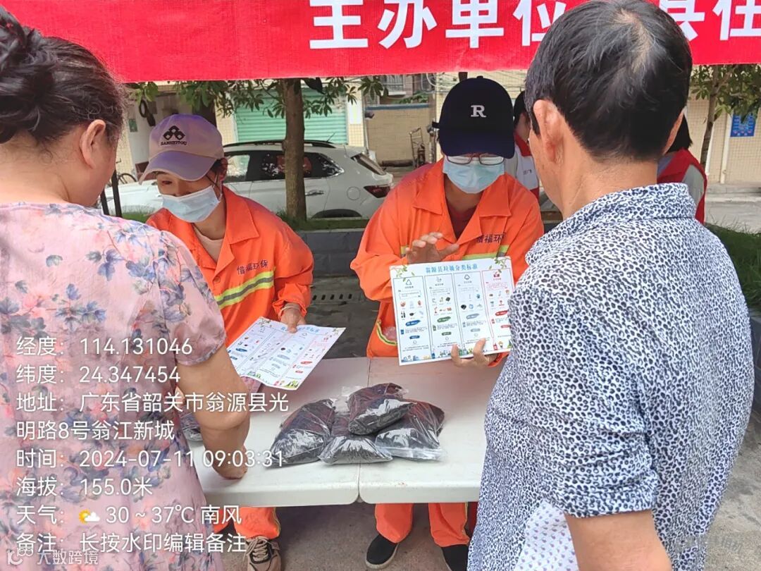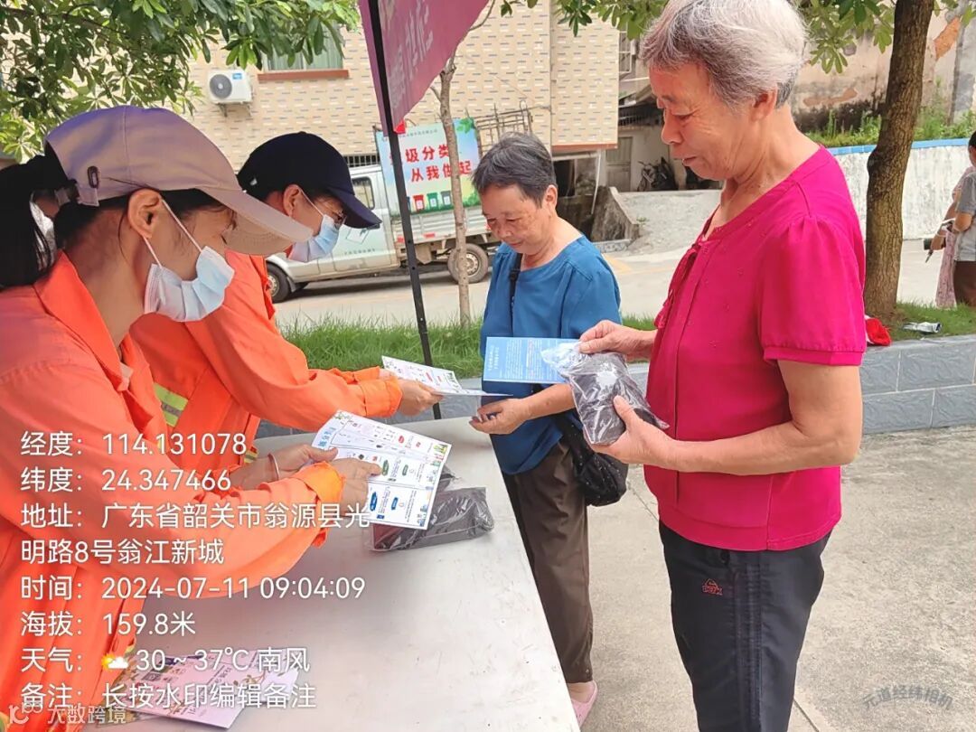 3、2024年7月11号在光明路公租房开展2024年翁源县“垃圾分类 全民行动”宣传活动。
