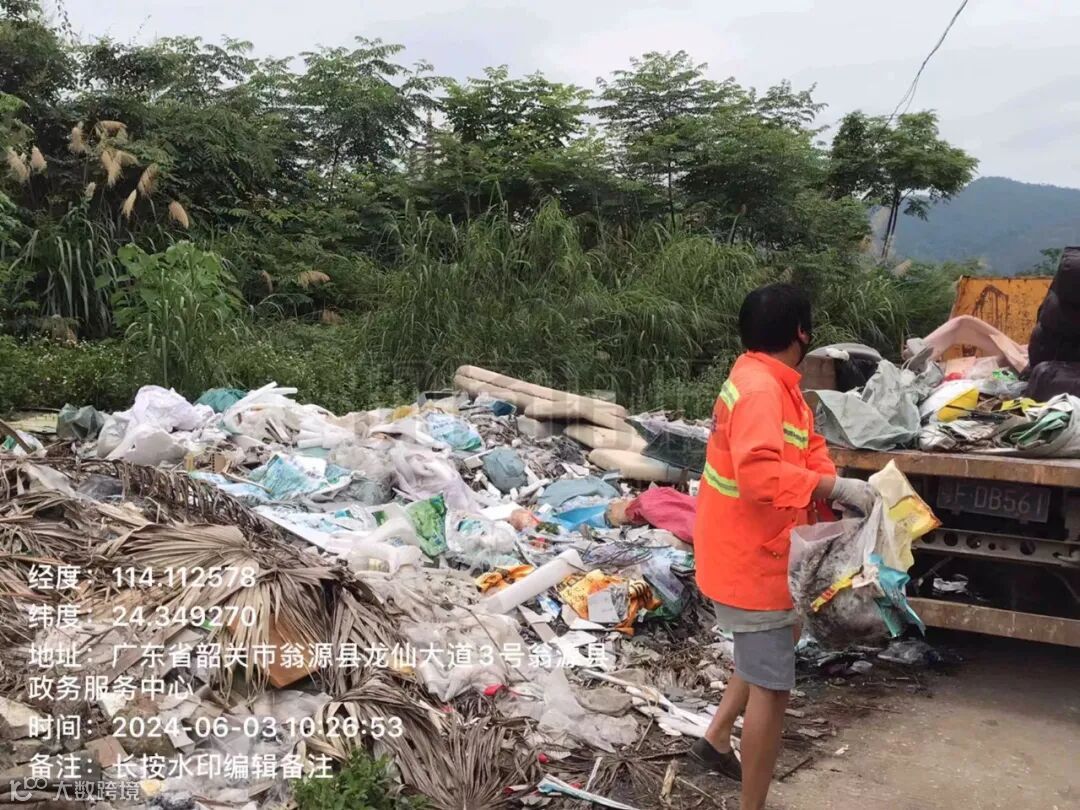 7、突击清理翁江大道车辆漏出大量装修垃圾。