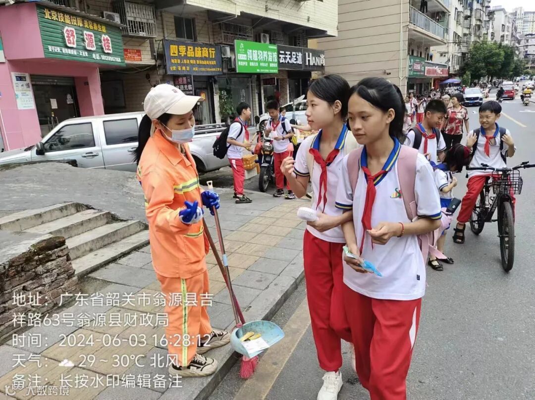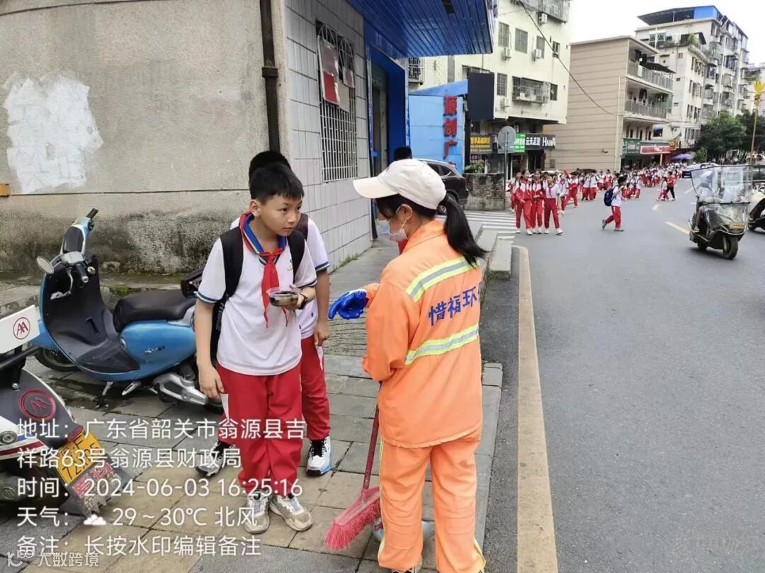 1、劝导人员在小学周边劝导学生放学不乱扔垃圾。