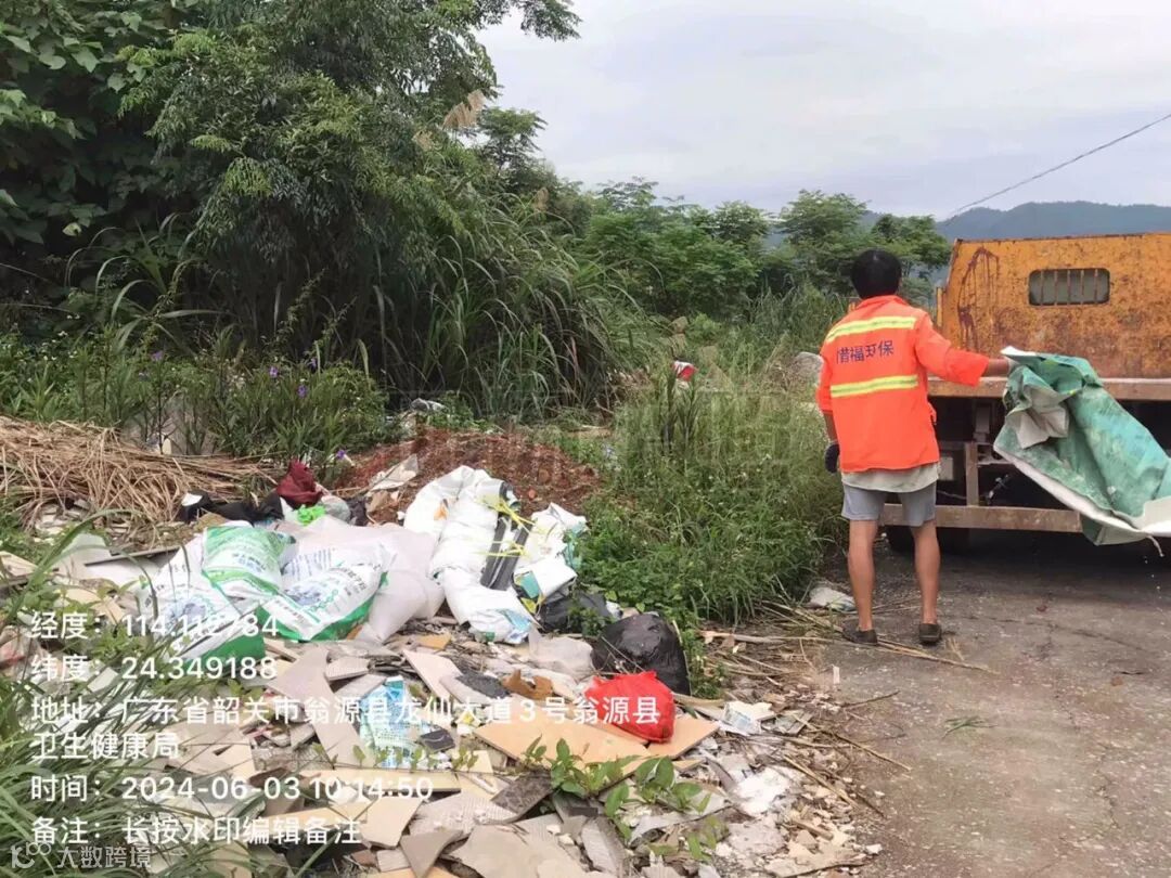 4、突击检查清理高陈原老路和高陈路口乱倒装修白色垃圾。