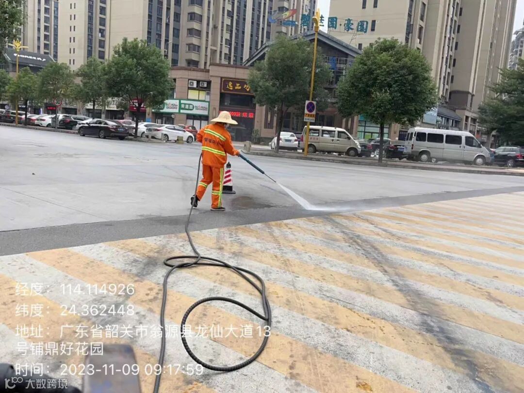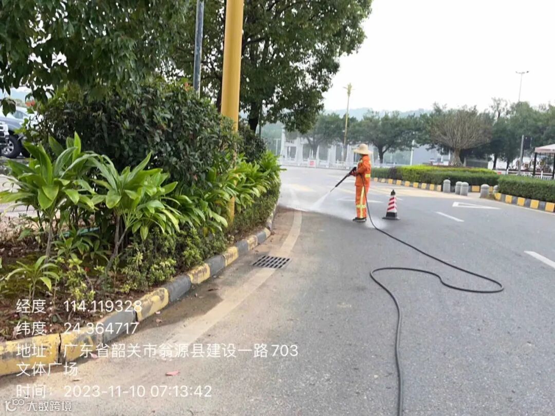 4、高压冲洗主干道路面,人行道及路沿路舌。
