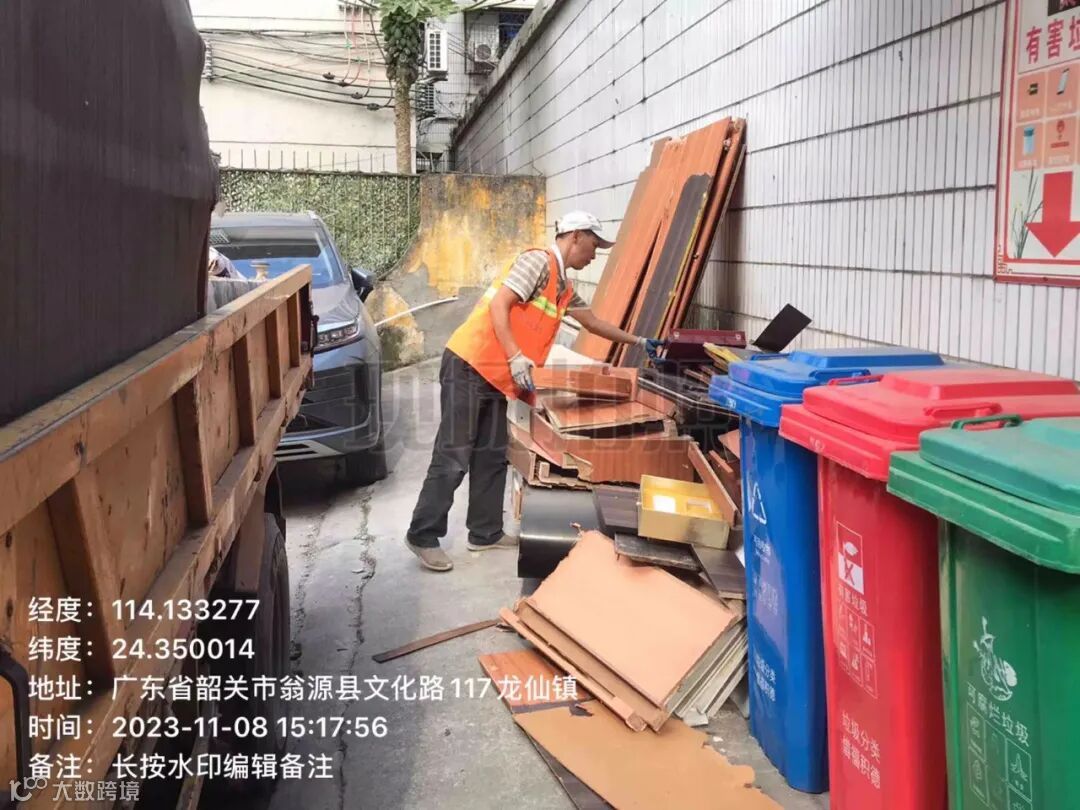 6、突击队加班加点清理大量大件废弃物、非生活垃圾(装修垃圾、树枝树叶)。