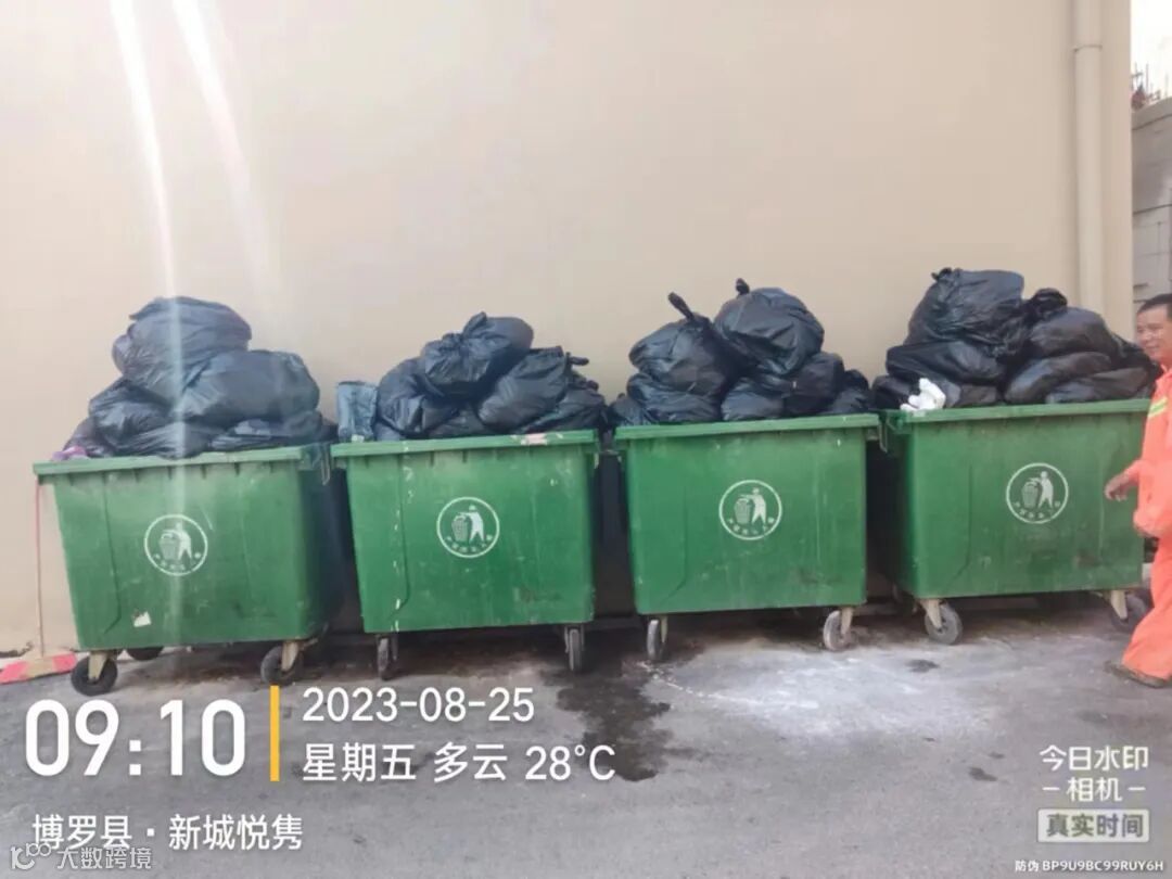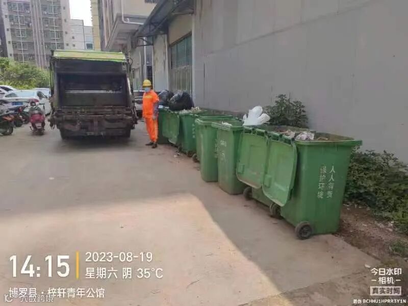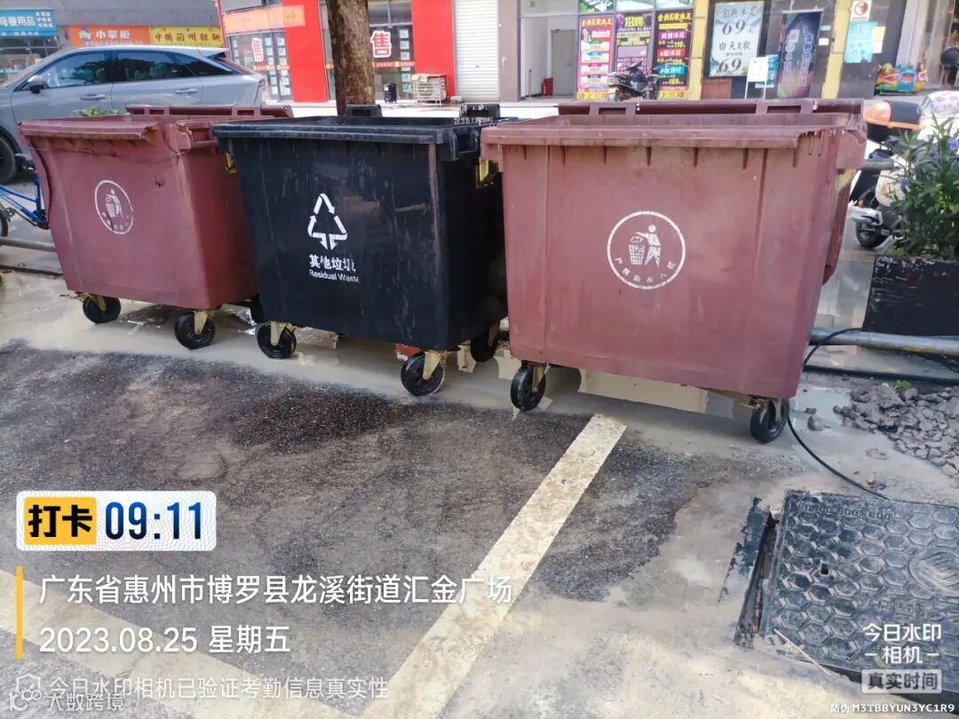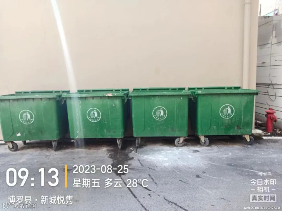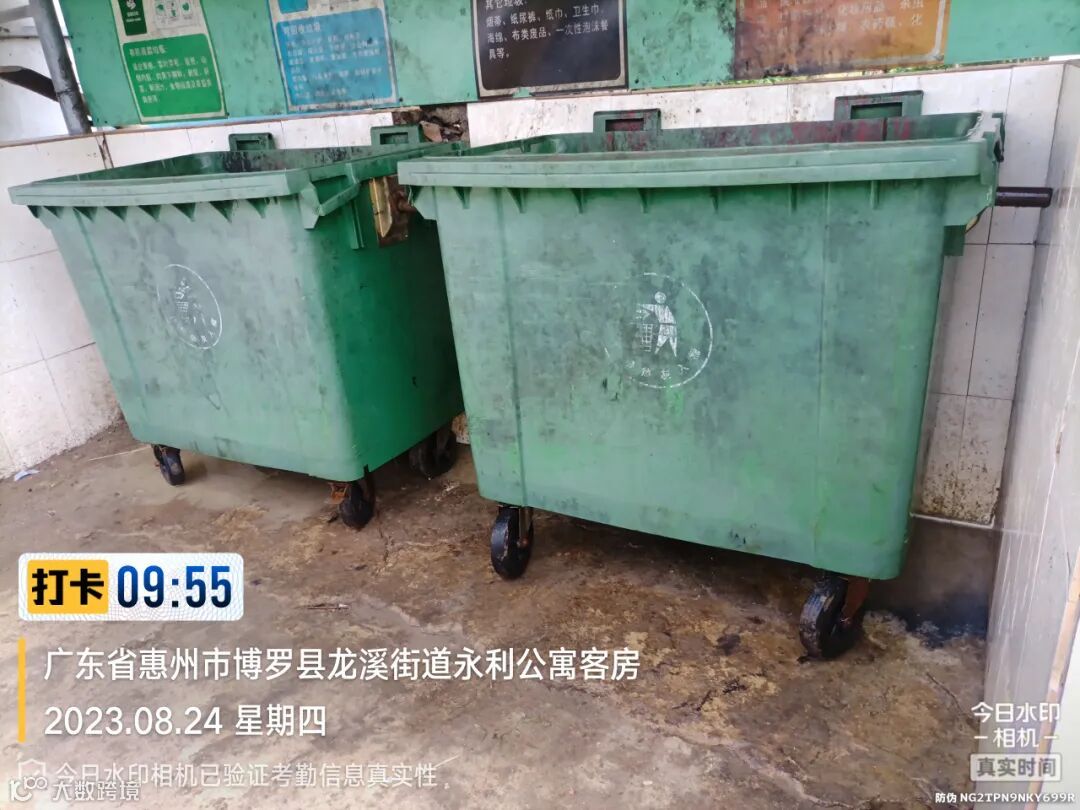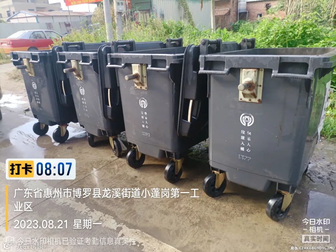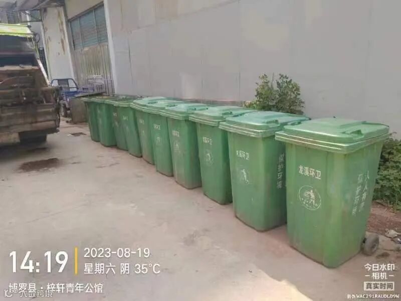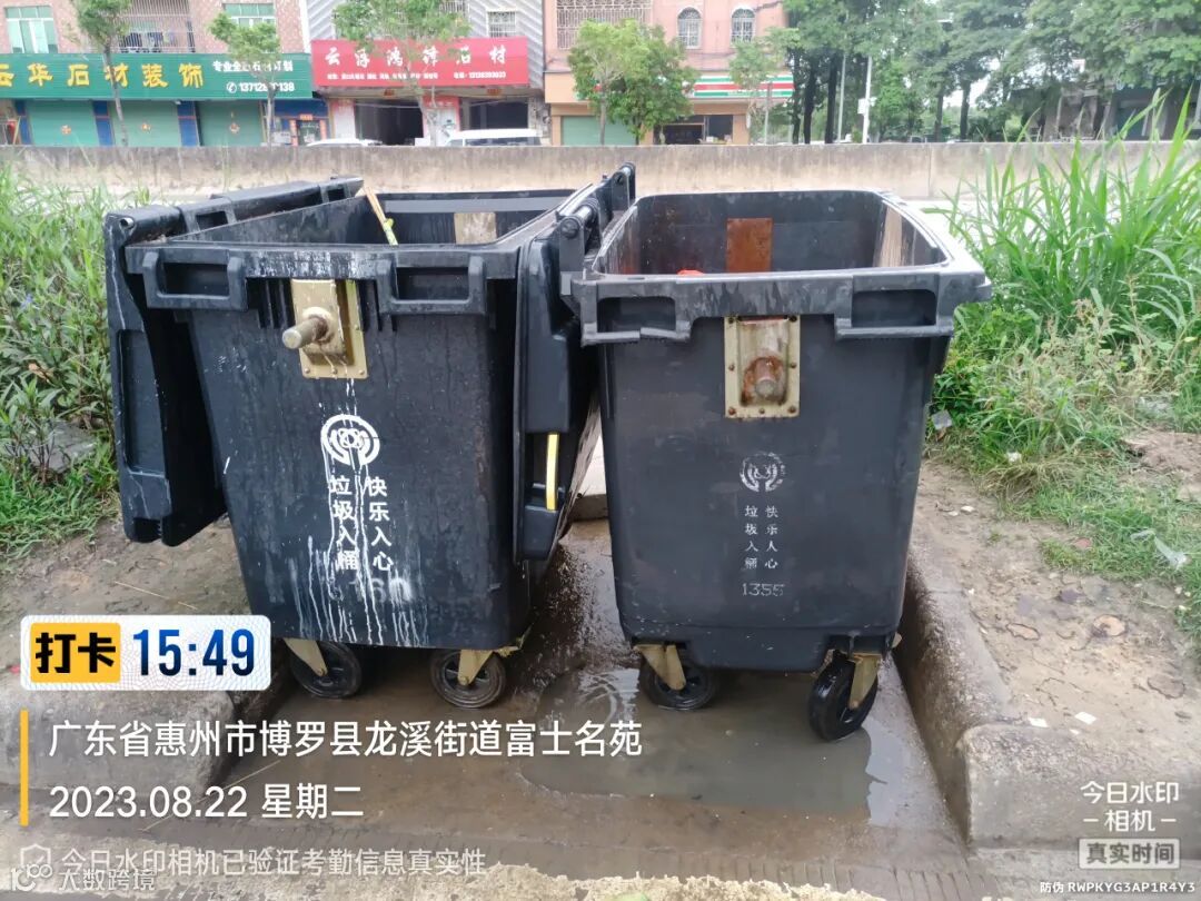 2、及时更换破损垃圾桶、补齐缺失桶盖,规范摆放垃圾桶。