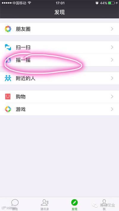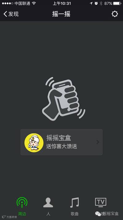 2.打开微信,找到摇一摇,左边会出现一个“周边”;