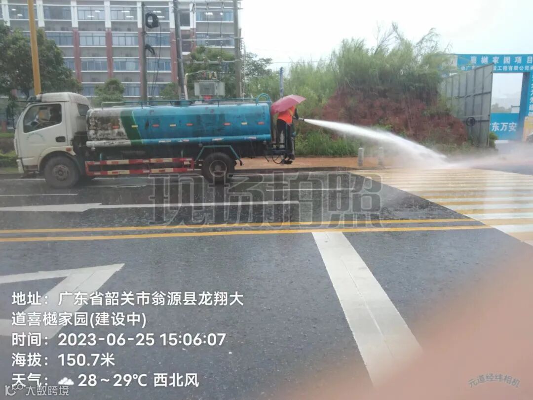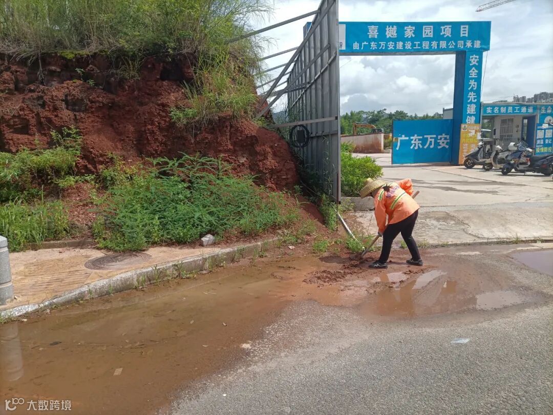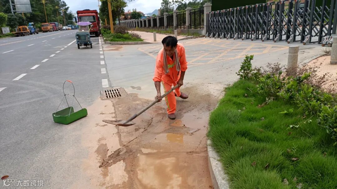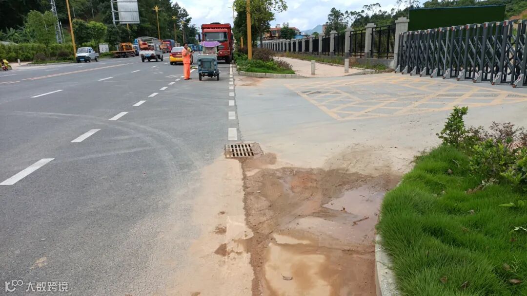4、雨后冲洗中间护拦青苔,路面流出泥巴。