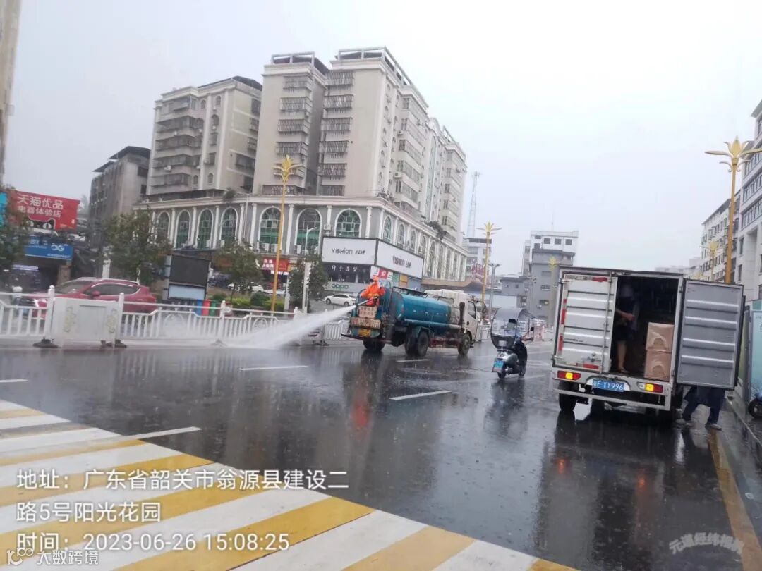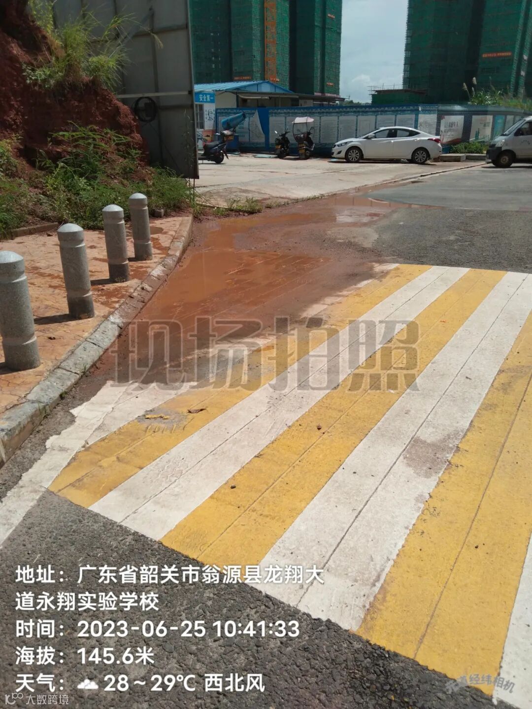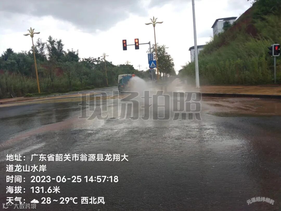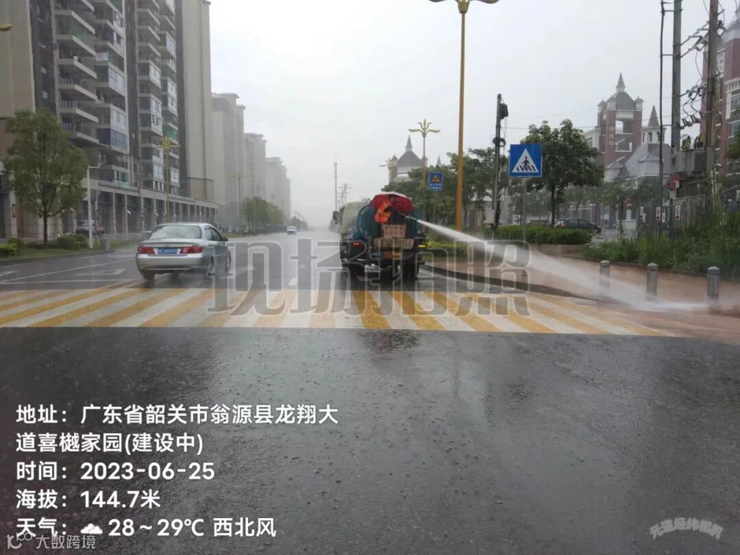 4、雨后冲洗中间护拦青苔,路面流出泥巴。