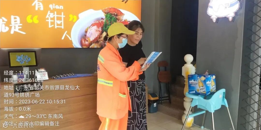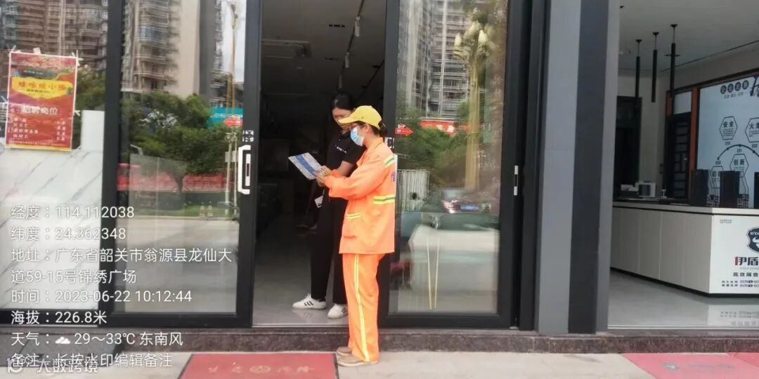 1、劝导人员入户锦绣广场周边商铺宣传垃圾干湿分离。