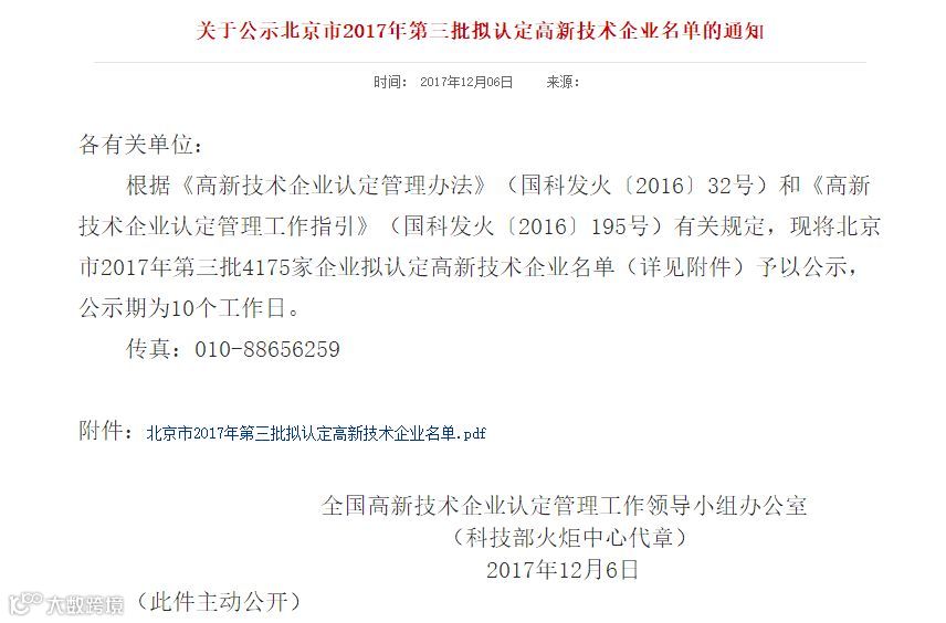 近日,高新技术企业认定管理官网公示了北京市2017年通过认定的高新技术企业名单,北京微播易道网络科技有限公司(以下简称“微播”)荣获国家级“高新技术企业”称号。