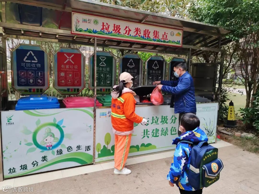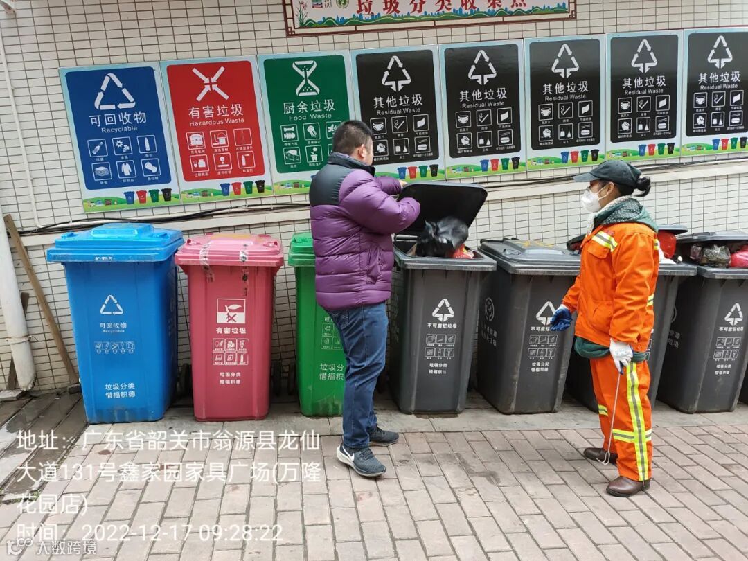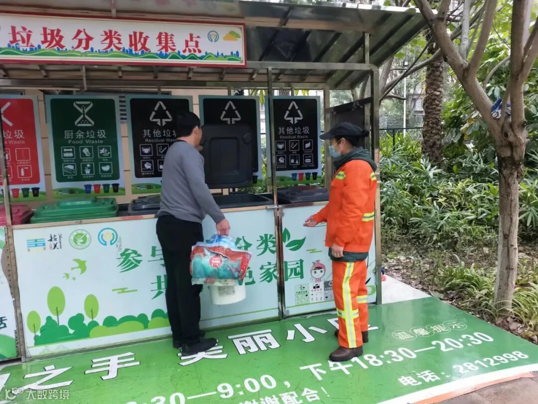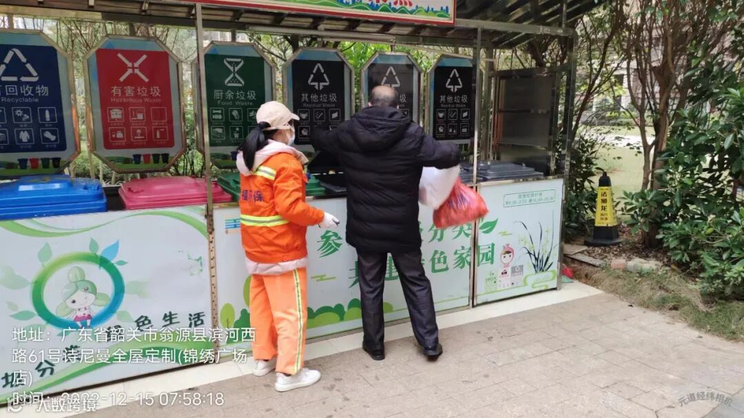 1、垃圾分类人员在各小区守点宣传。