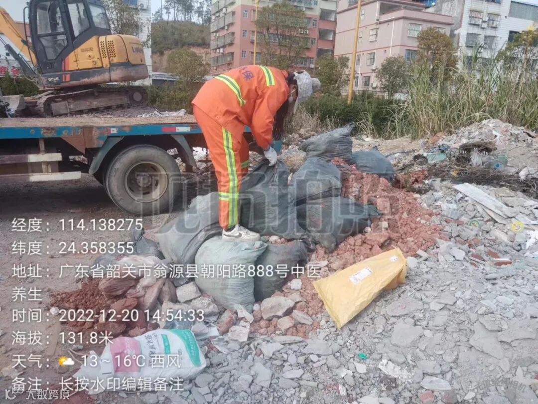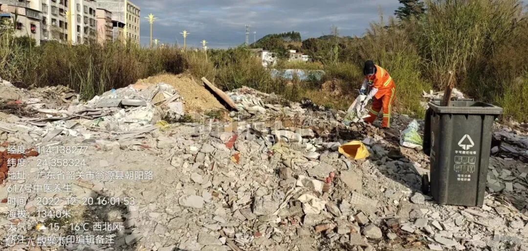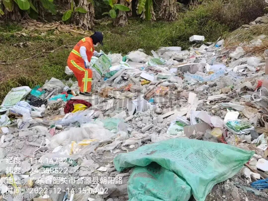 排查并清理城中村交接处乱倒的装修白色垃圾
