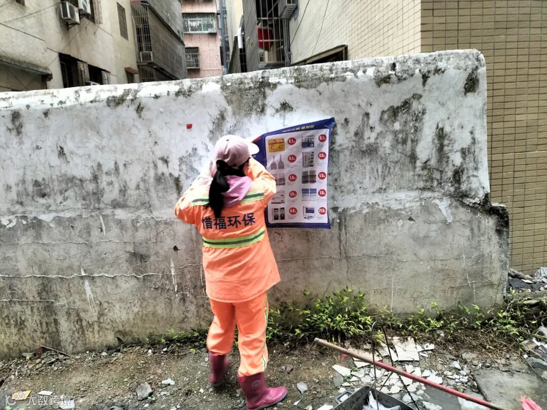 2、加强辖区路面精细化保洁及卫生死角、背街小巷、路牙杂草清理、乱张贴清理作业。