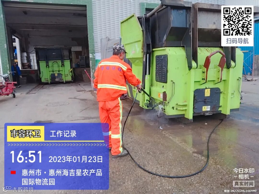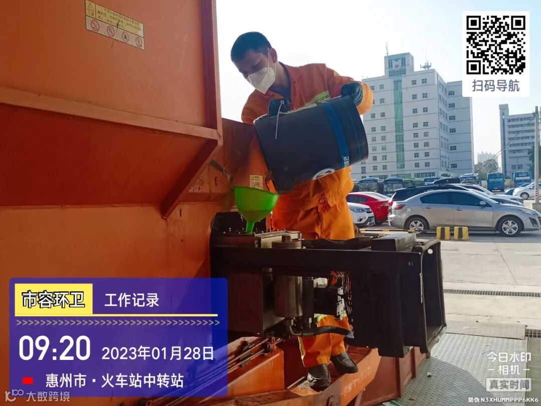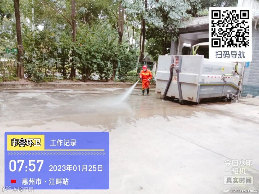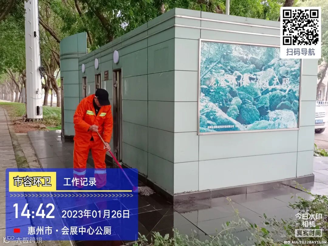 中转站/公厕日常作业及维护,每日两次以上高压冲洗并喷雾消毒站内外地面及箱体