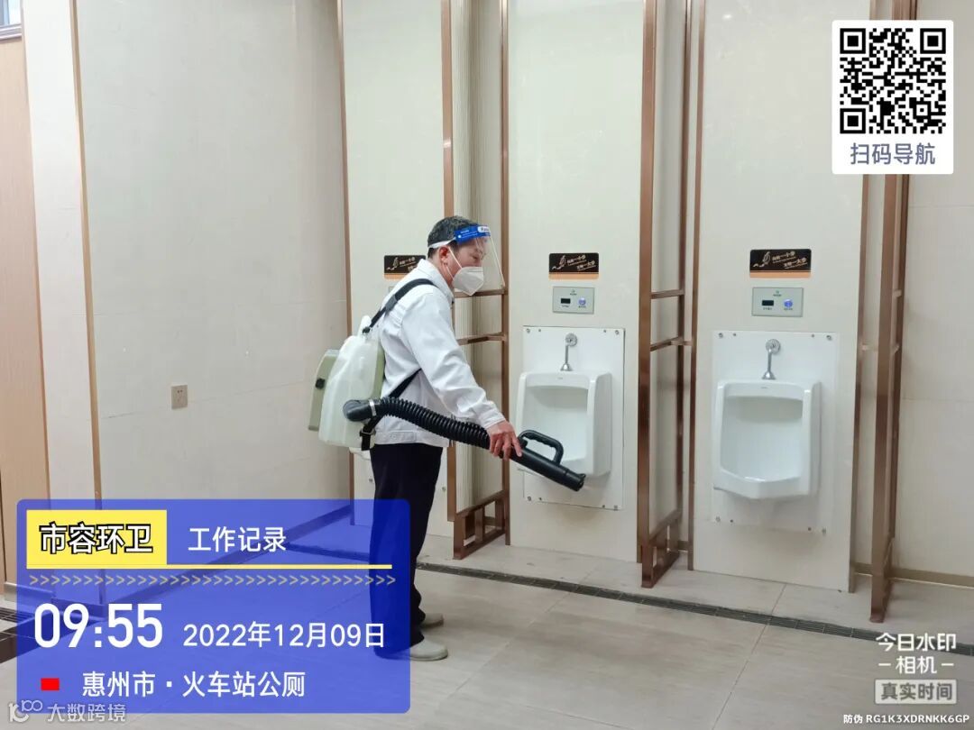 中转站/公厕日常作业及维护,每日两次以上高压冲洗并喷雾消毒站内外地面及箱体