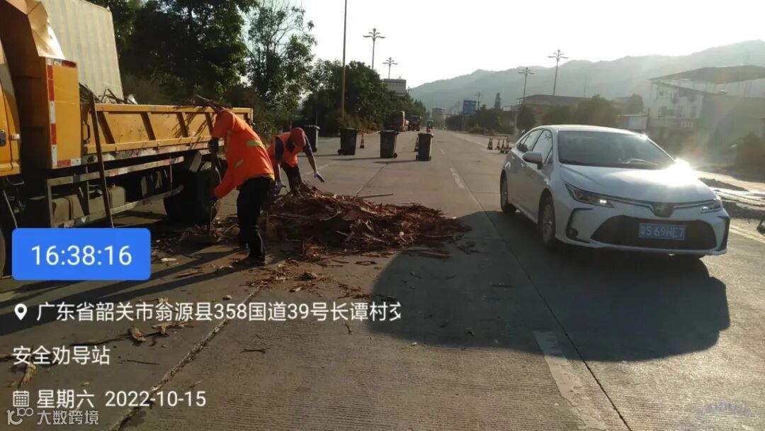 3、临时清理官龙公路段拉板皮车辆掉下大量树皮。