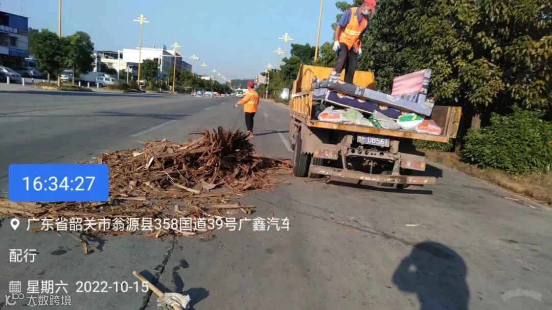 清理官龙公路段拉板皮车辆掉下大量树皮