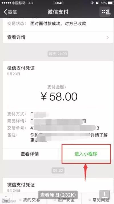 用微信支付成功后,用户收到的支付凭证上有个小程序的入口,点击后可以跳转到对应该商户开发的小程序。