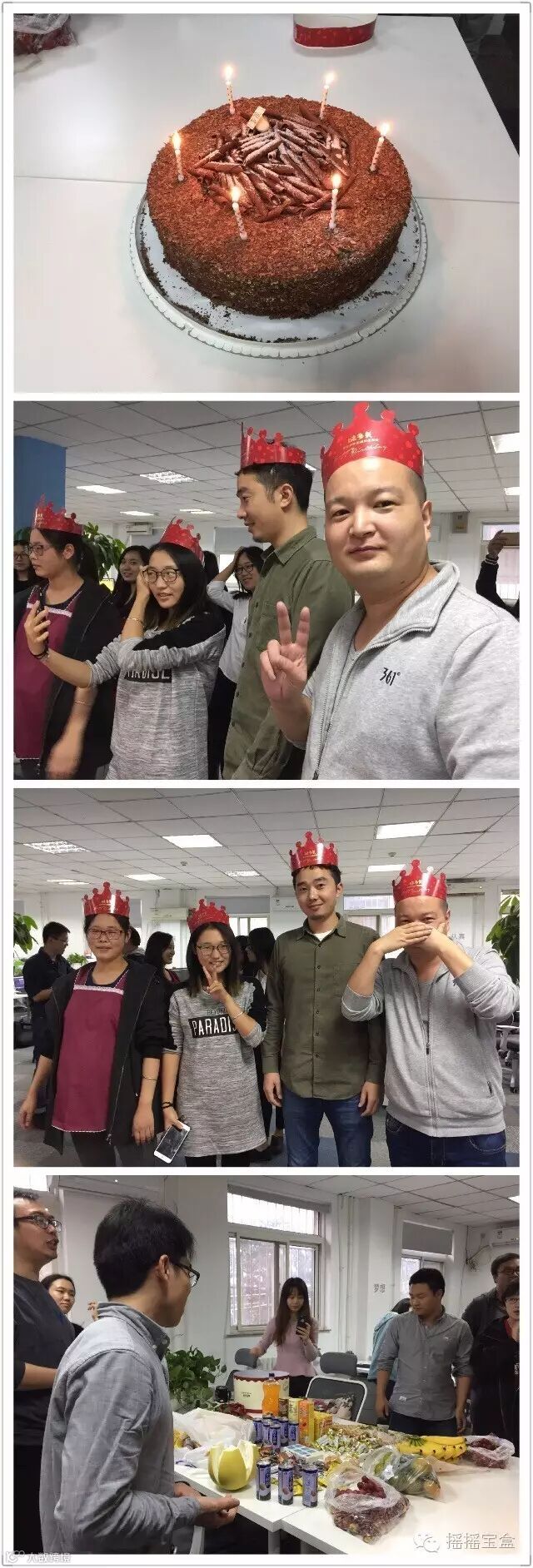 “祝你生日快乐~祝你生日快乐...”熟悉的旋律伴随着同事们的祝福,寿星们一起吹灭生日蜡烛。摇摇宝盒特意为寿星们准备了水果、饮料以及各种零食,吃吃喝喝中,聊聊生活趣事,侃侃工作新闻,轻松氛围中同事间的感情悄然升温!