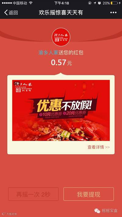 微播易道与渝乡人家的合作始于【汇客】智慧餐饮系统,摇摇宝盒产品正式上线之后,双方再次加深合作。作为京内知名川菜馆,渝乡人家发展至今,离不开自身的努力,当然,口碑传播也为其积攒大批忠实客户。然而,互联网时代,“酒香也怕巷子深”,对渝乡人家来说,提高本地品牌宣传,让更多的人知道自己,是一个重要任务。