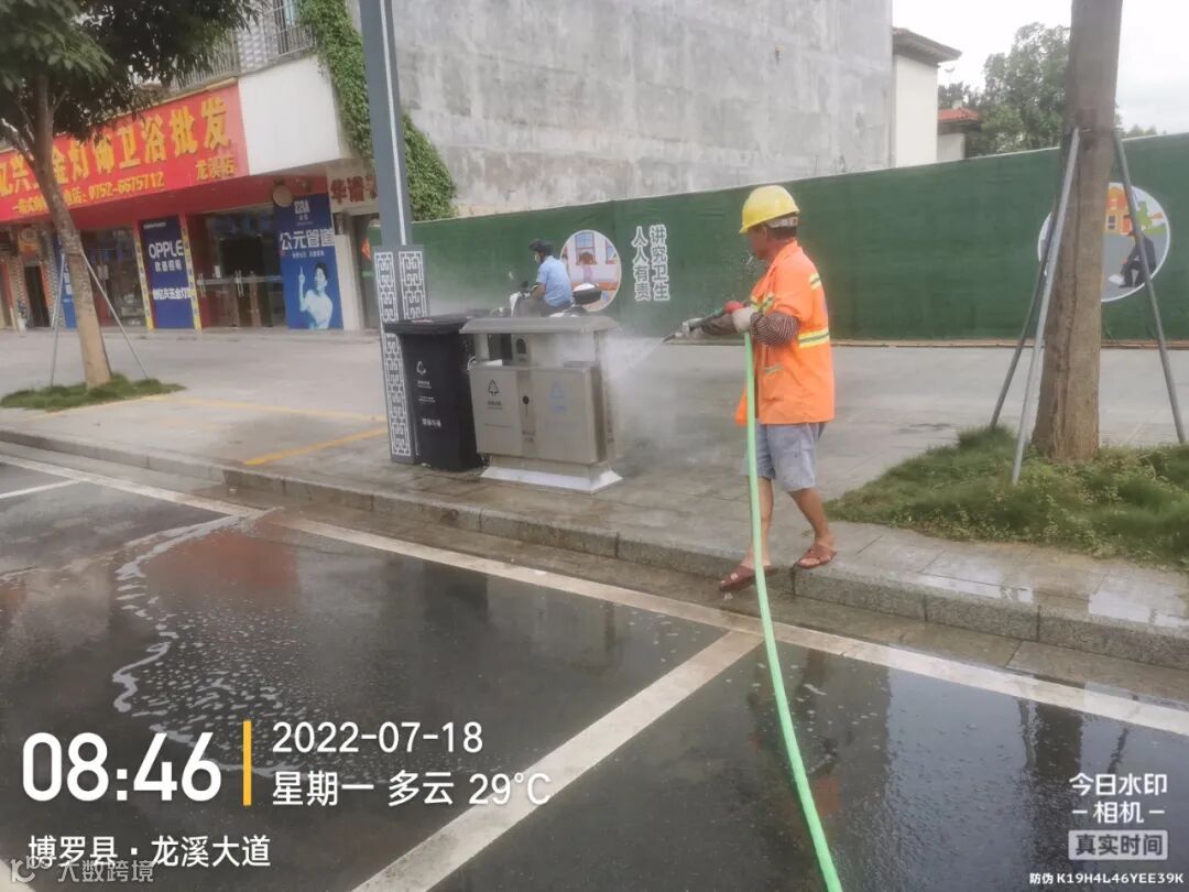 1、加强冲洗镇区桶点、果皮箱及周边环境。
