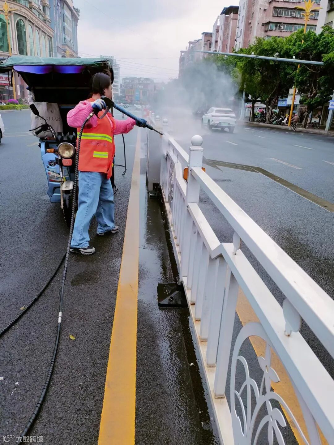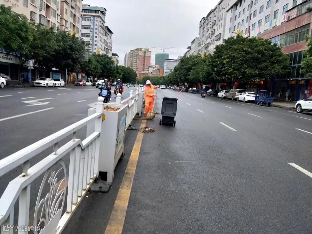 3、利用雨天优势强化冲洗顽固污渍及泥沙污染路段,加强雨后慢车道边沙和垃圾桶的清理作业。