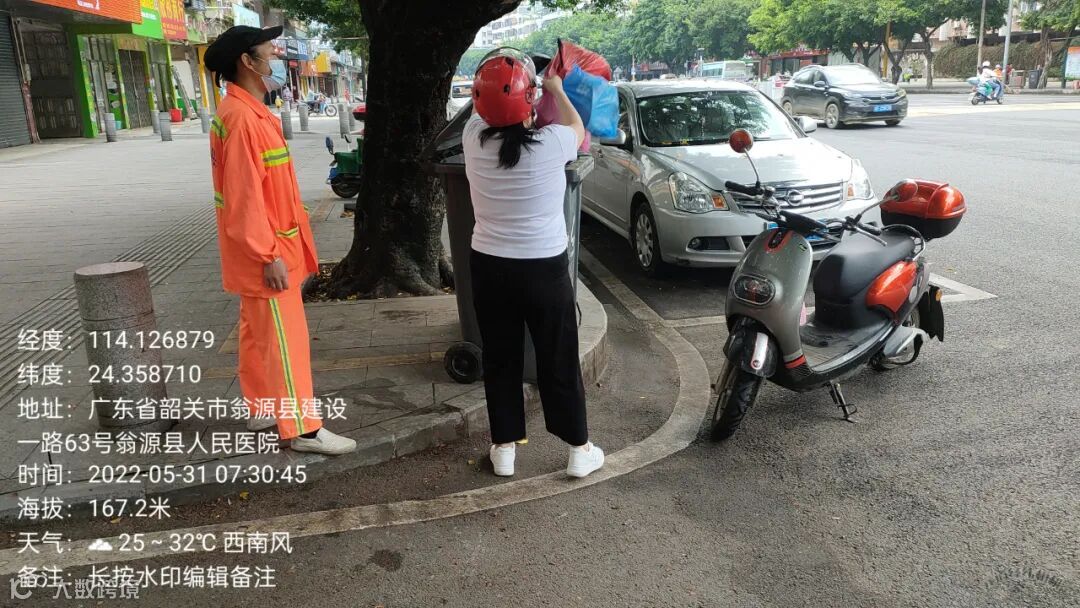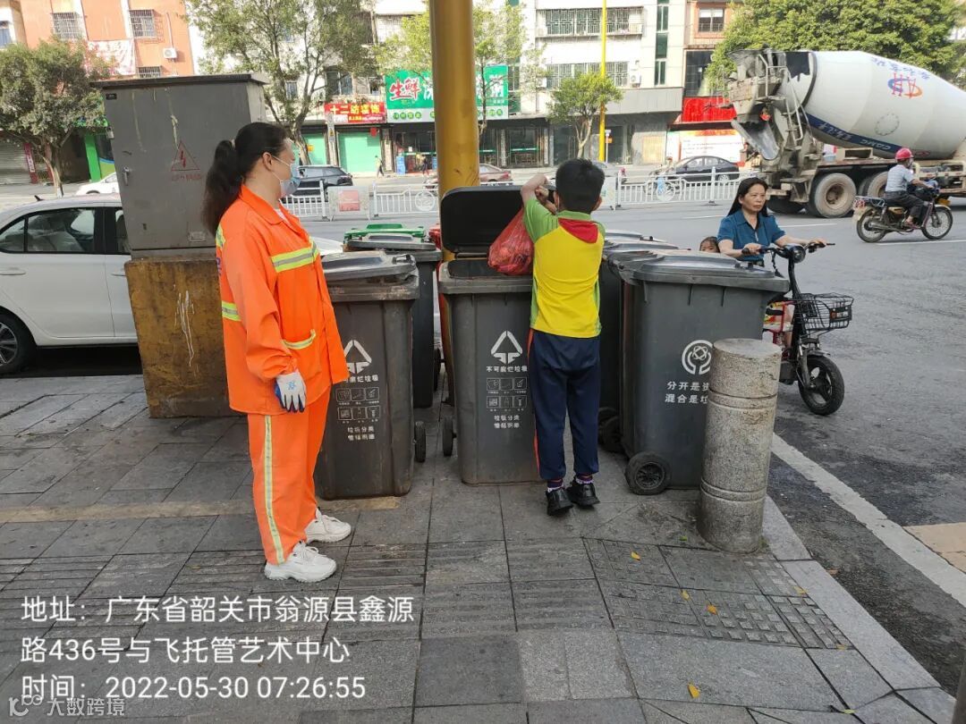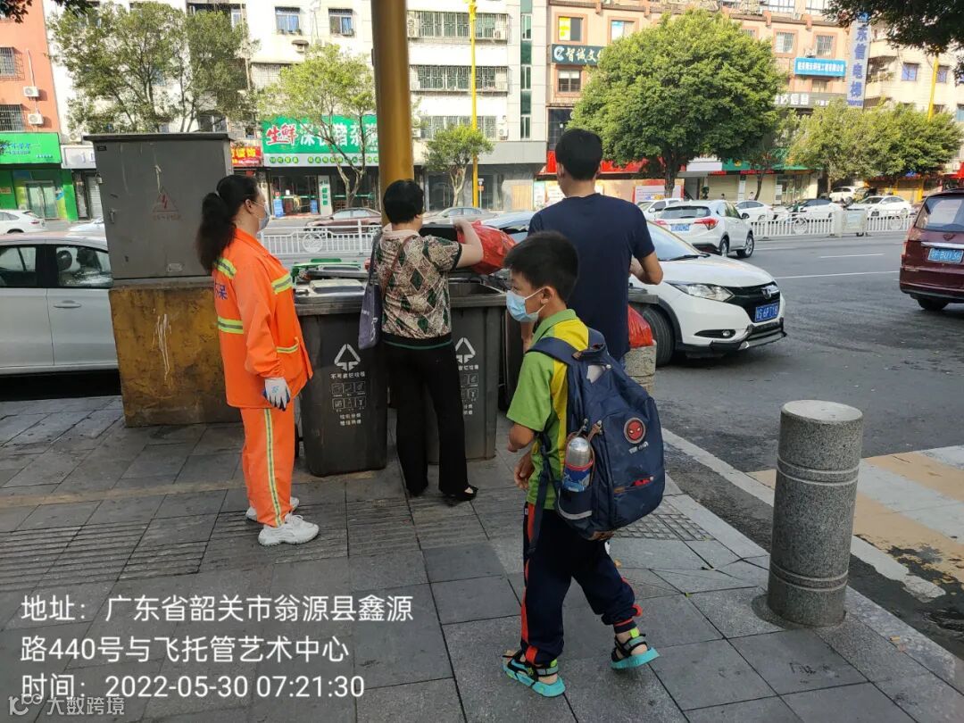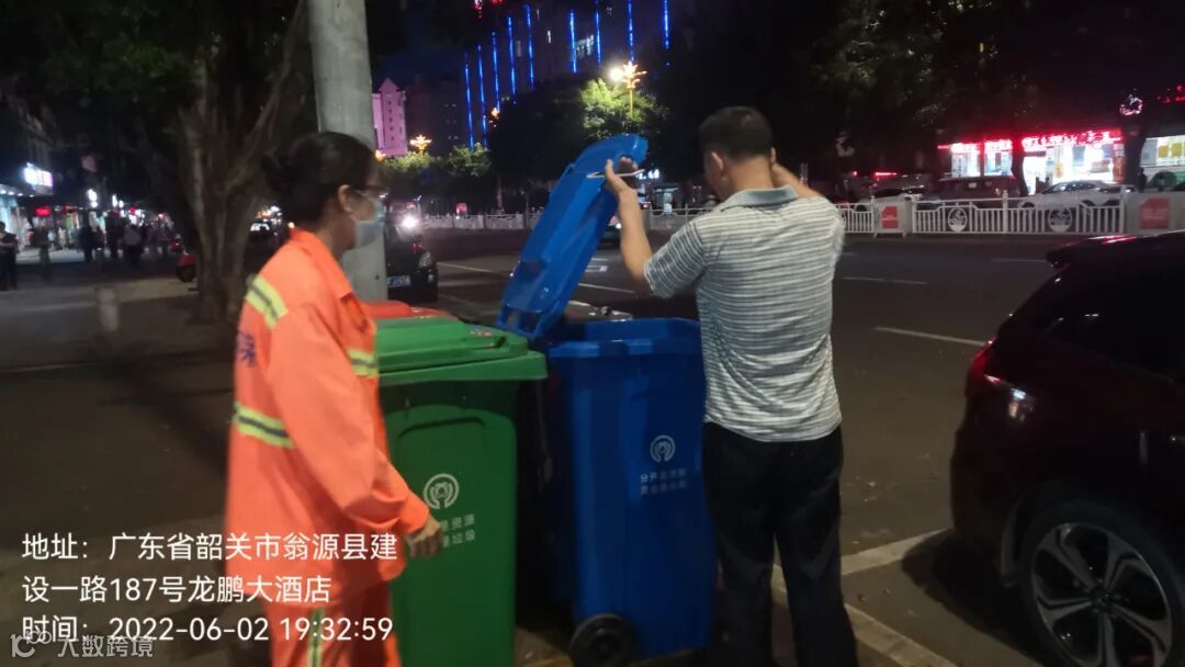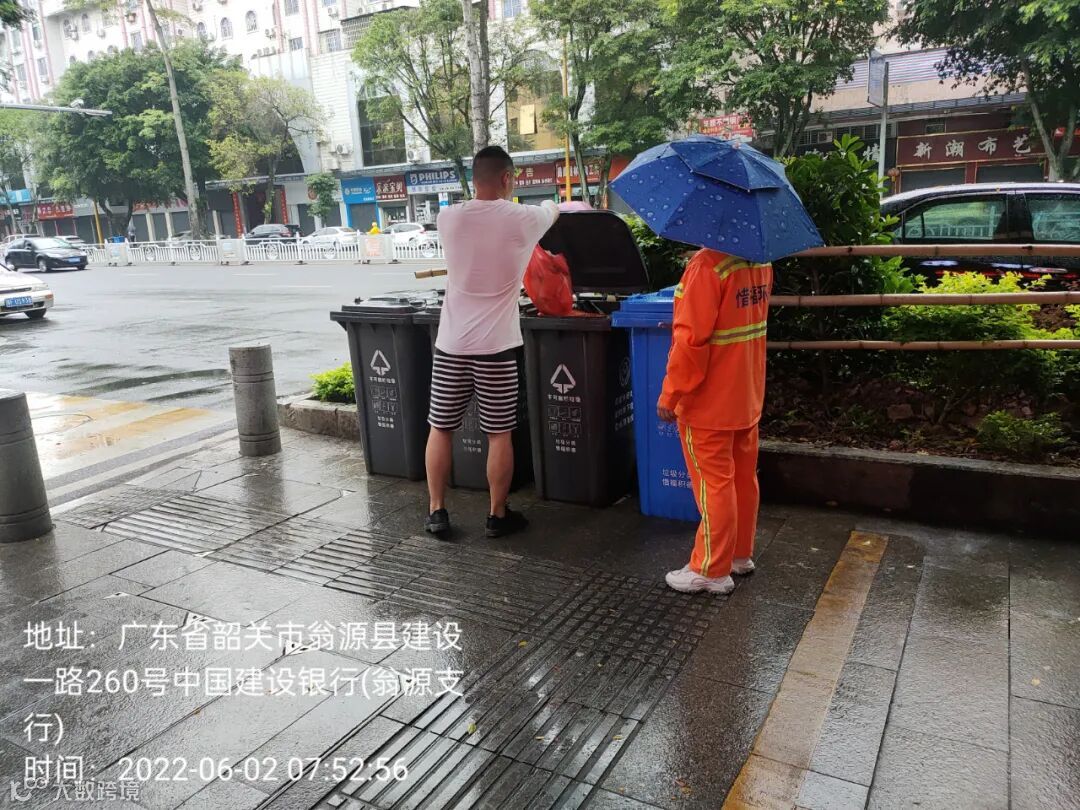 2、垃圾分类劝导员在在建设二路及建国路各垃圾收集点守点劝导居民自行打开桶盖投放垃圾。