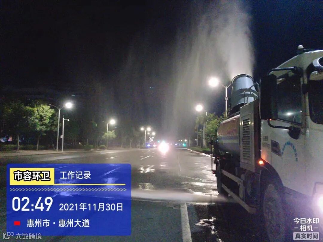 白天夜间常态化冲洗清扫辖区各路段及沿线喷雾洒水降尘作业