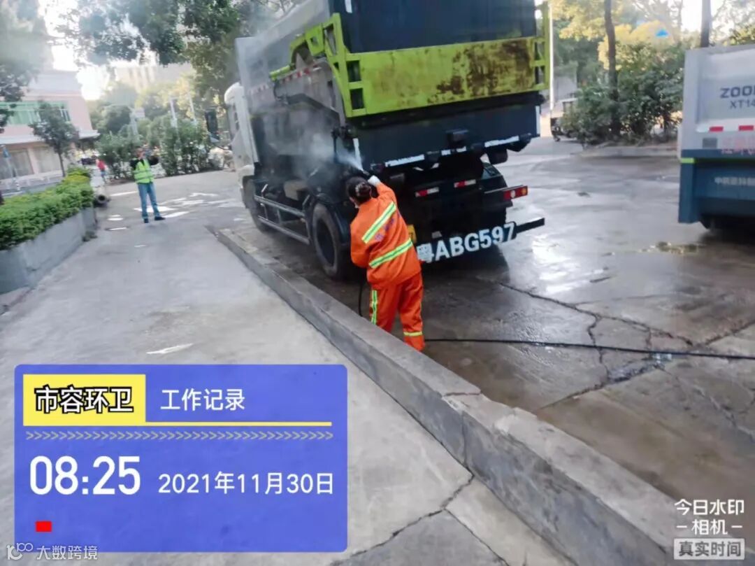 直压线及时清运桶点垃圾并将桶点周边清扫冲洗干净,时刻清洗车身,保持车身整洁
