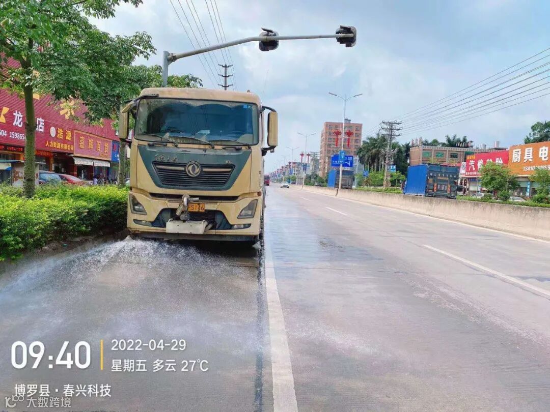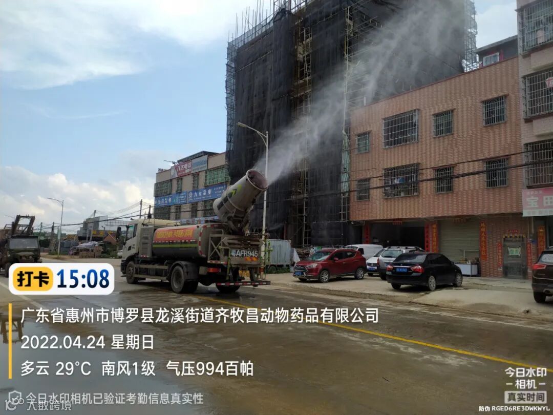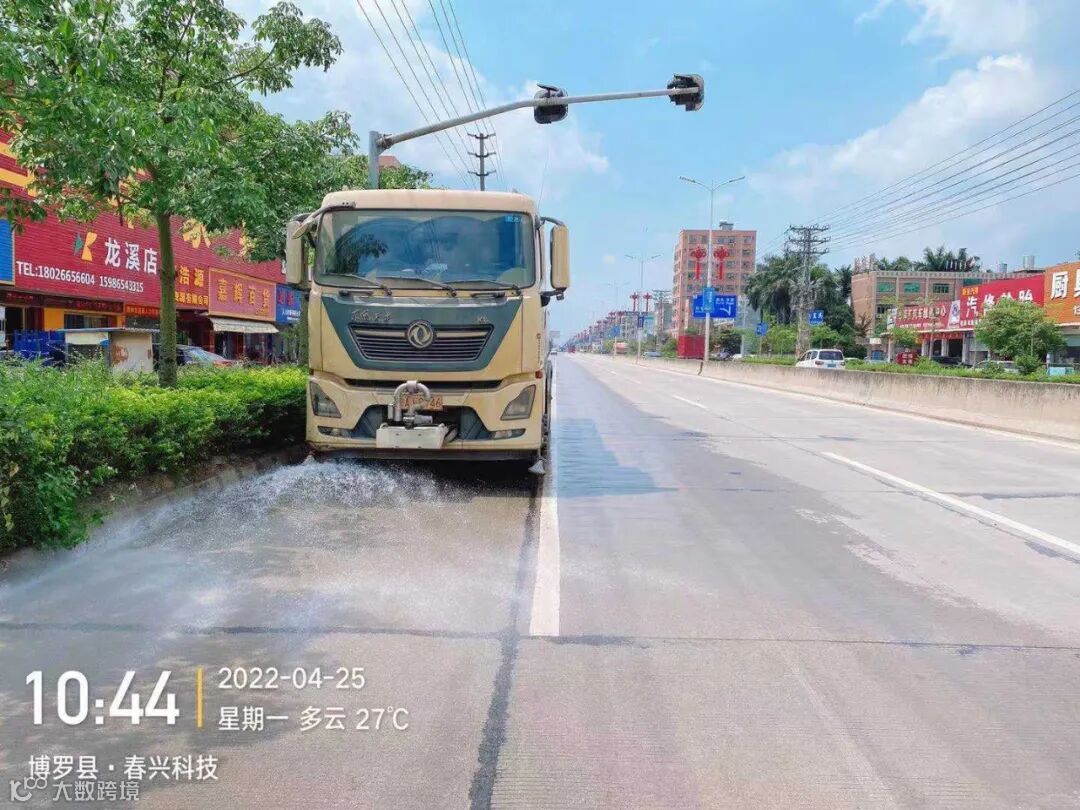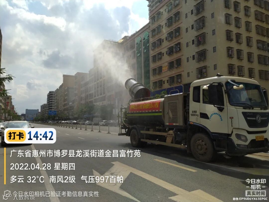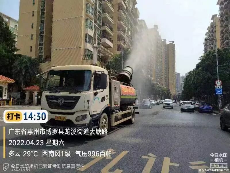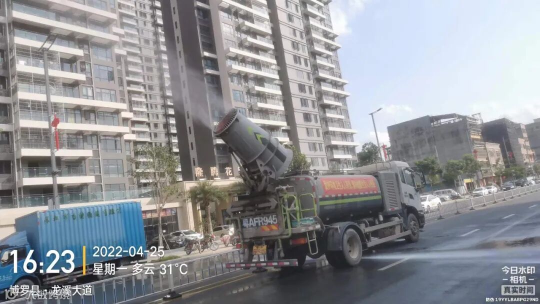 3、水车、雾炮车配合龙溪街道部门扬尘管控应急应对方案,积极做好洒水降尘工作。