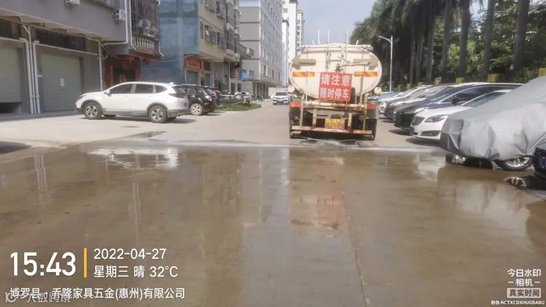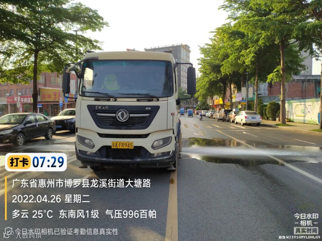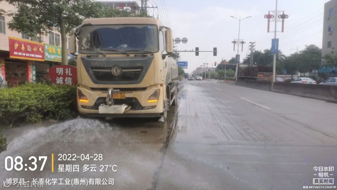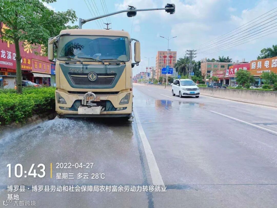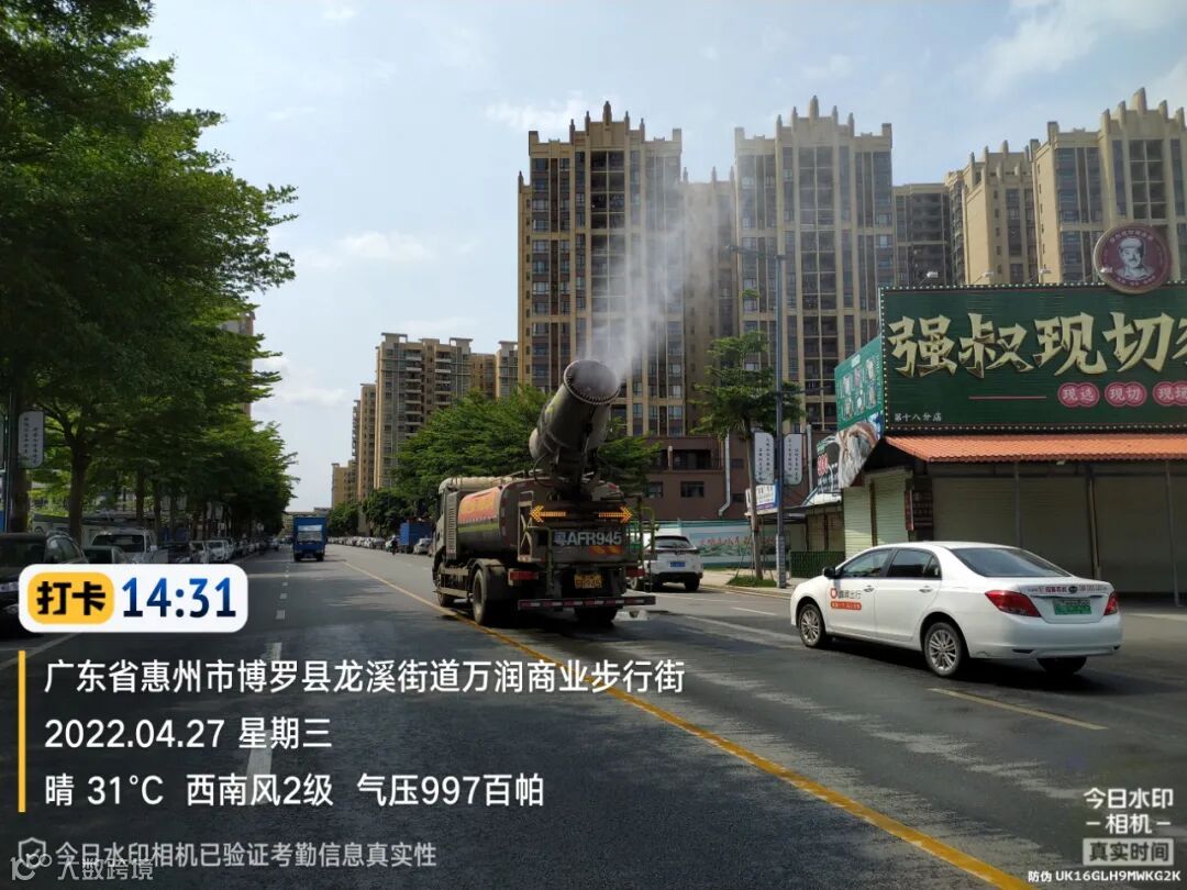 3、水车、雾炮车配合龙溪街道部门扬尘管控应急应对方案,积极做好洒水降尘工作。