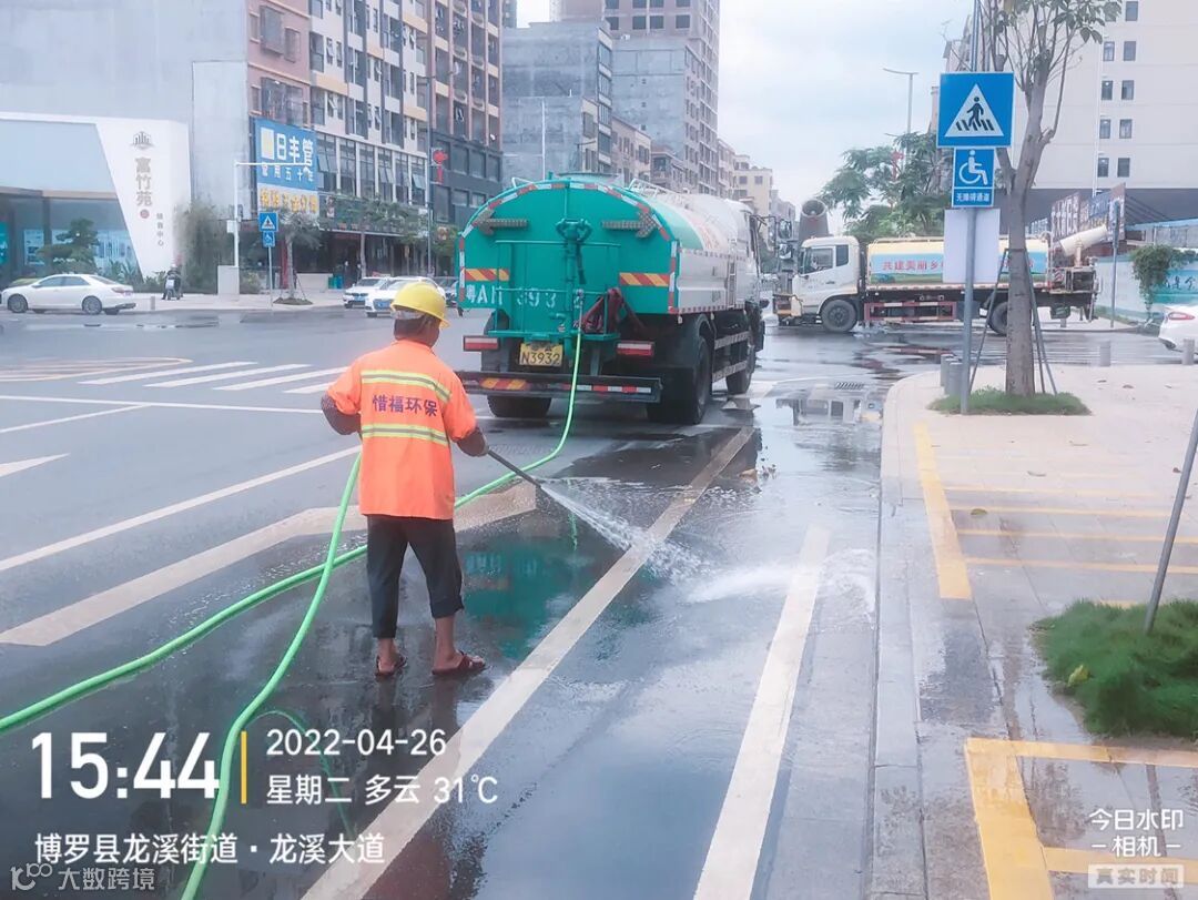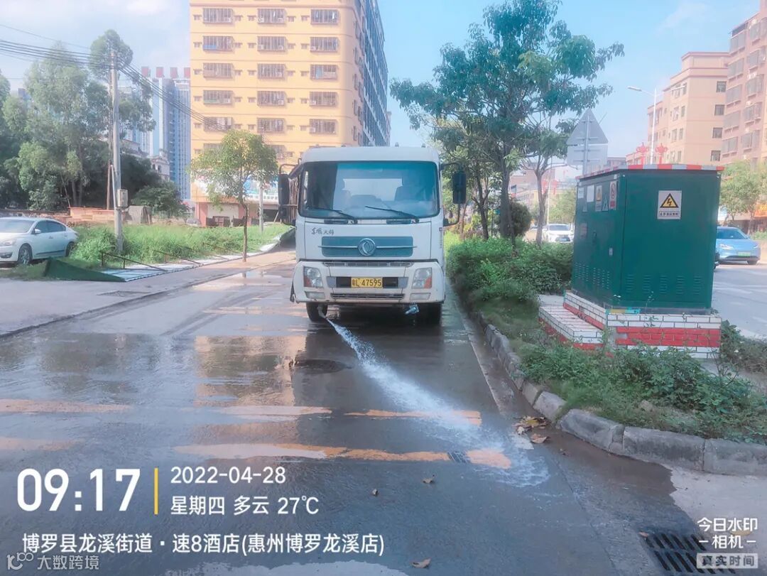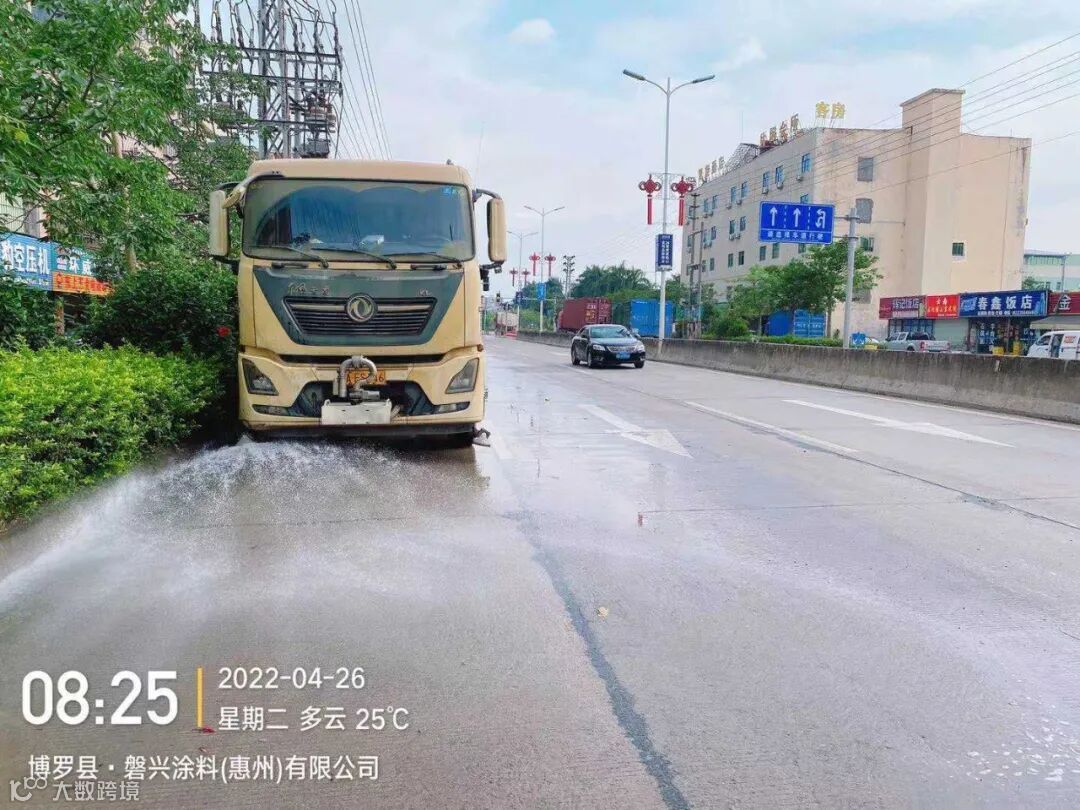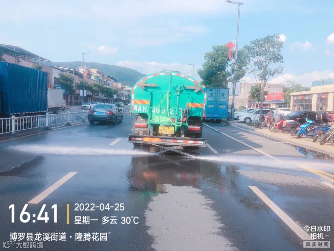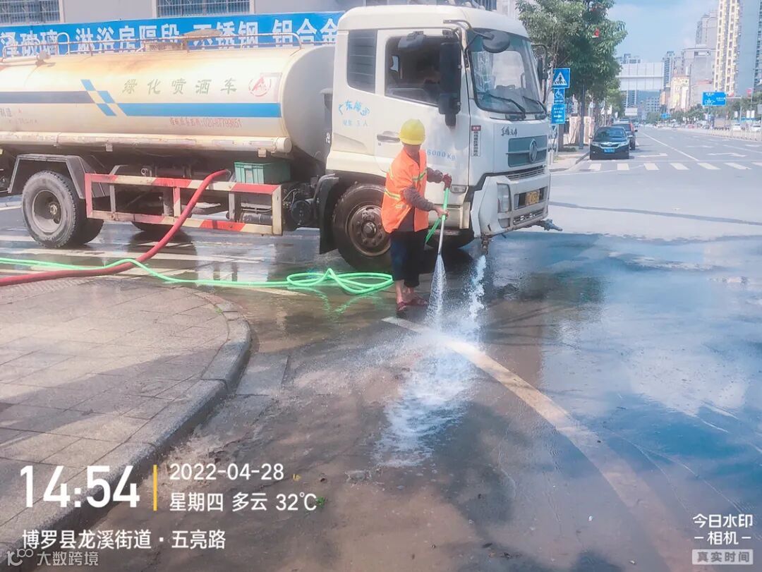 3、水车、雾炮车配合龙溪街道部门扬尘管控应急应对方案,积极做好洒水降尘工作。