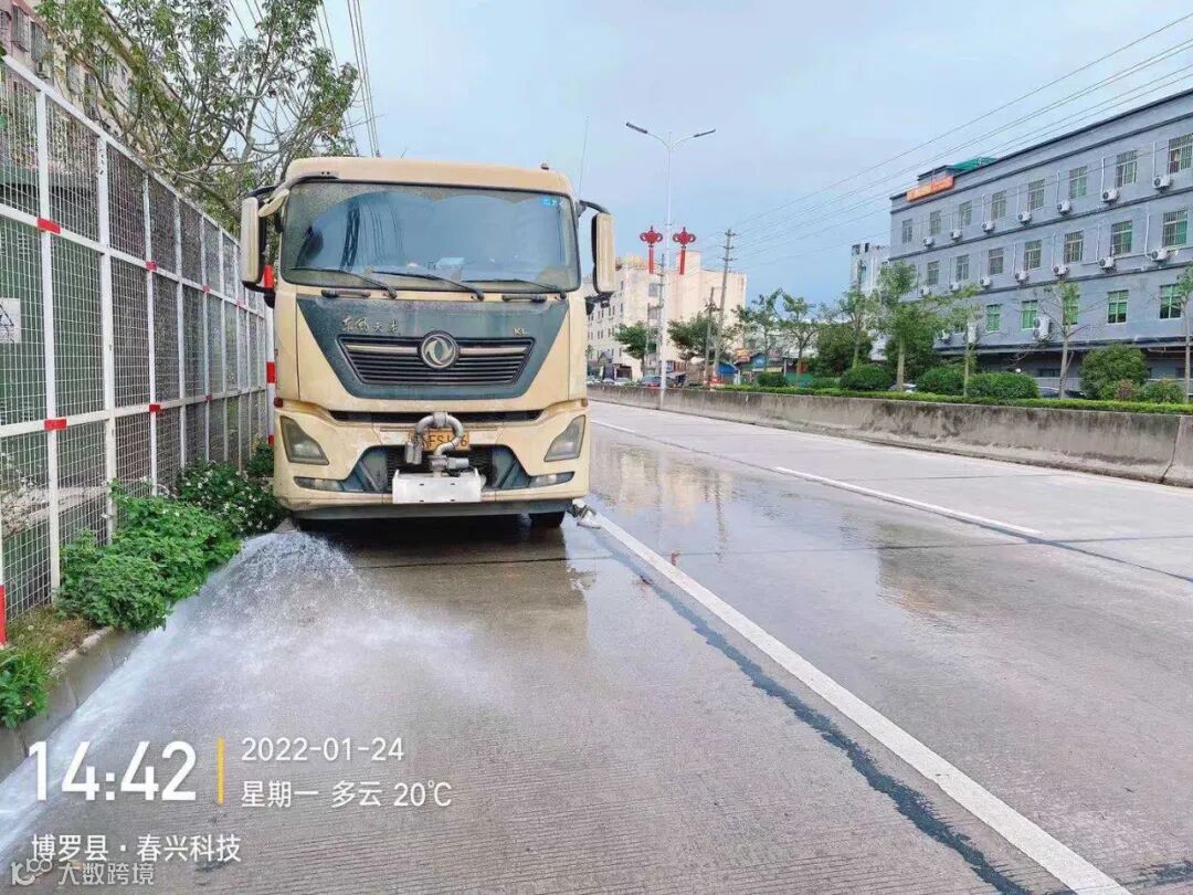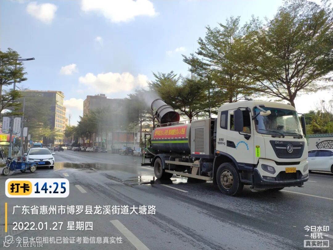 3、加强龙桥大道路面保洁降尘,增加扫路车、洒水车、雾炮车作业频次。