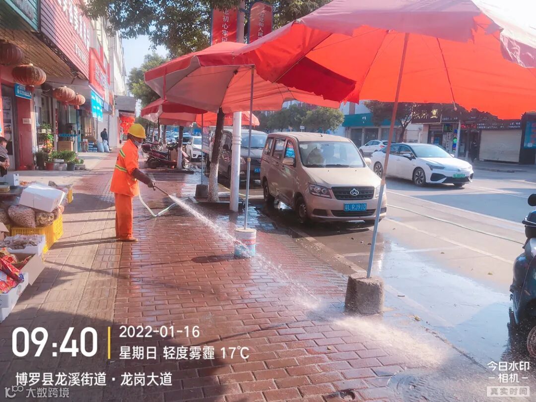 3、加强冲洗街道中心区主干道、人行道、桶点、果皮箱及护栏、广告牌等公共设施。