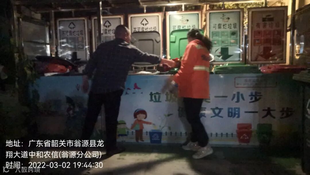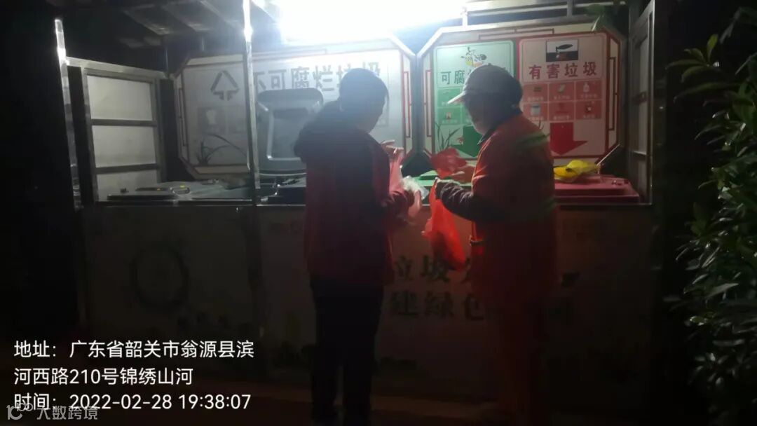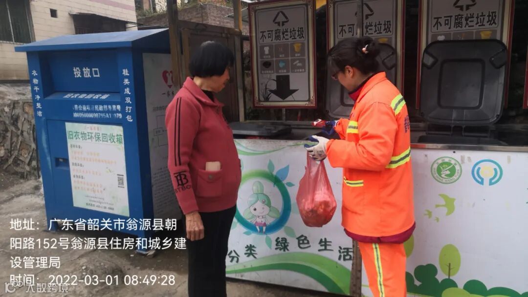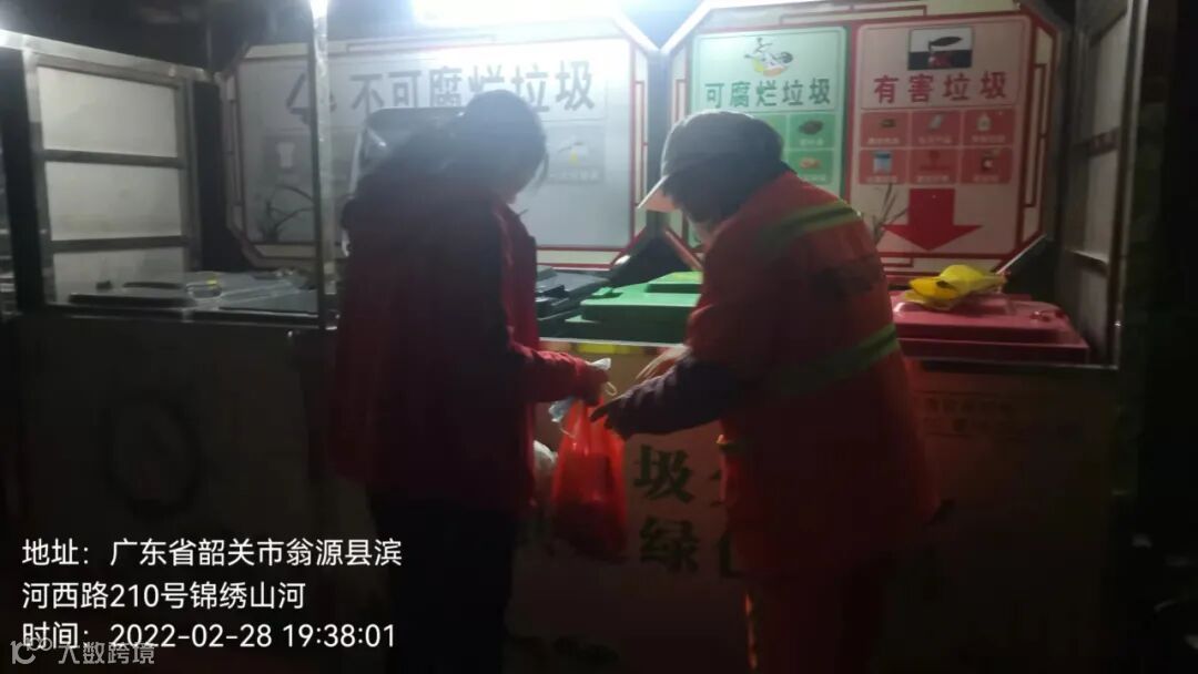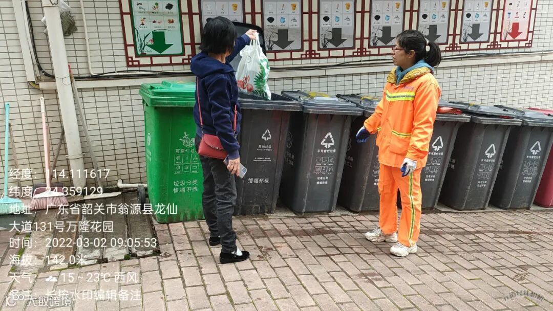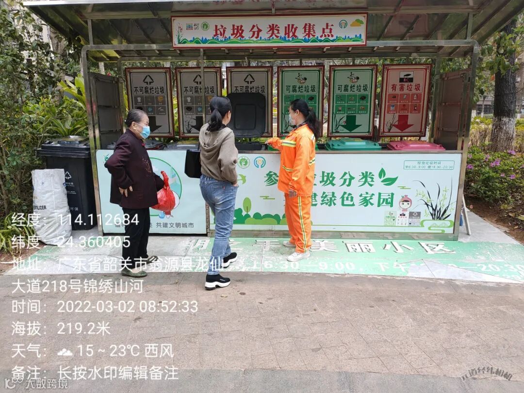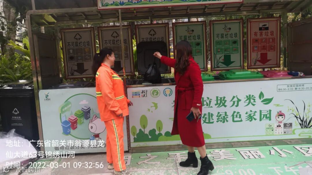 3、垃圾分类人员在各小区守点宣传。