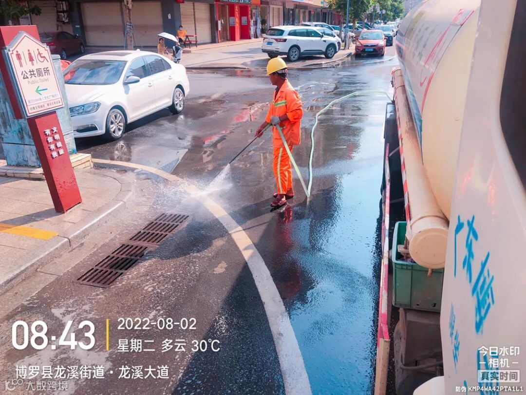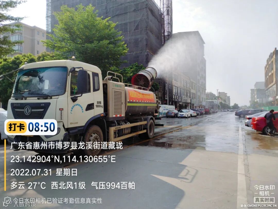 3、加大国控点周边道路洒水抑尘频次,并加强冲洗安全岛及镇区停车位。