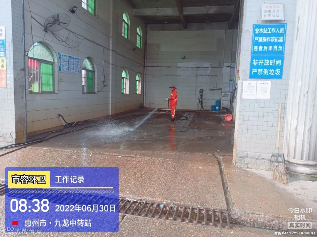中转站/公厕日常作业及维护,每日两次以上高压冲洗并喷雾消毒站内外地面及箱体