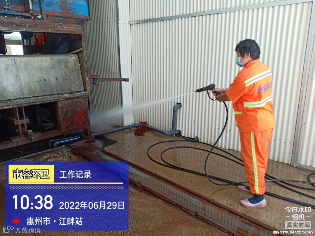 直压线及时清运桶点垃圾并将桶点周边冲洗清洁干净,加强车身清洁作业