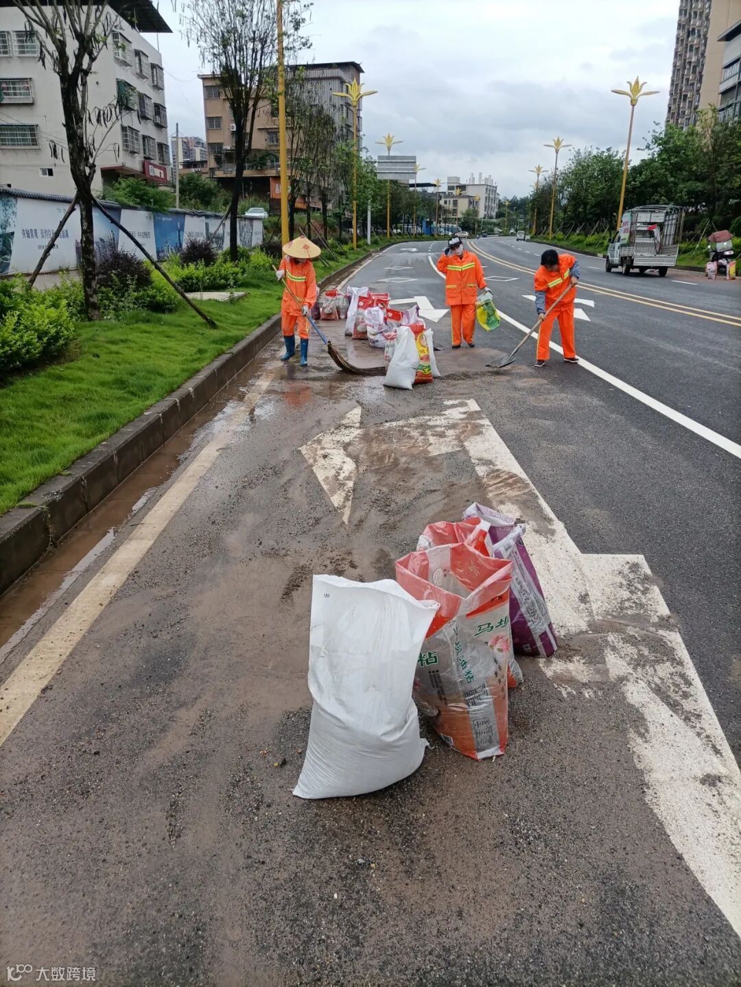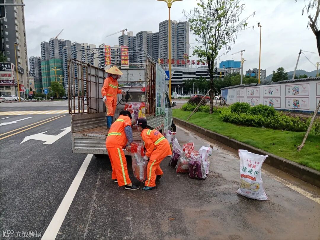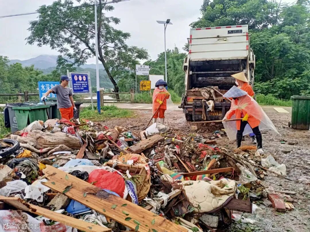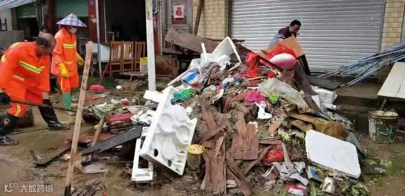 1、全力以赴抢收灾区大量杂物和垃圾:每天临时调配32人,出动车辆9台,日均处理垃圾96.56吨。