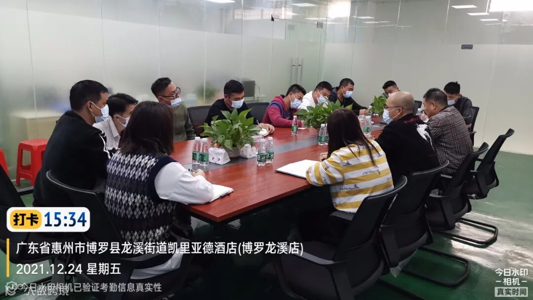 (县市容环境卫生事务中心工作组刘股、龙溪项目管理人员召开周例会,布置下周工作安排,刘股作工作指示。)
