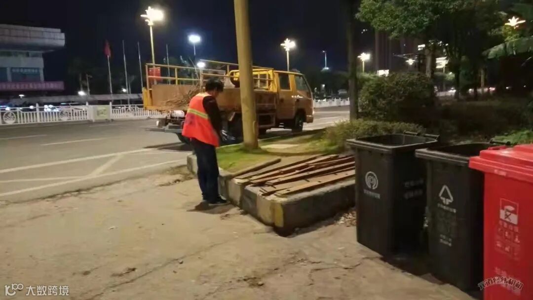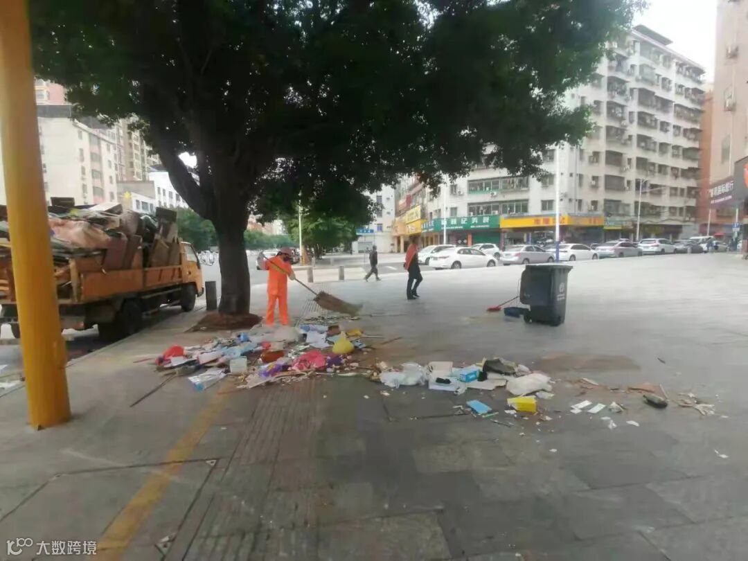 3、巩文检查期间,4辆大件车4班制巡回清捡街道大件废弃杂物。